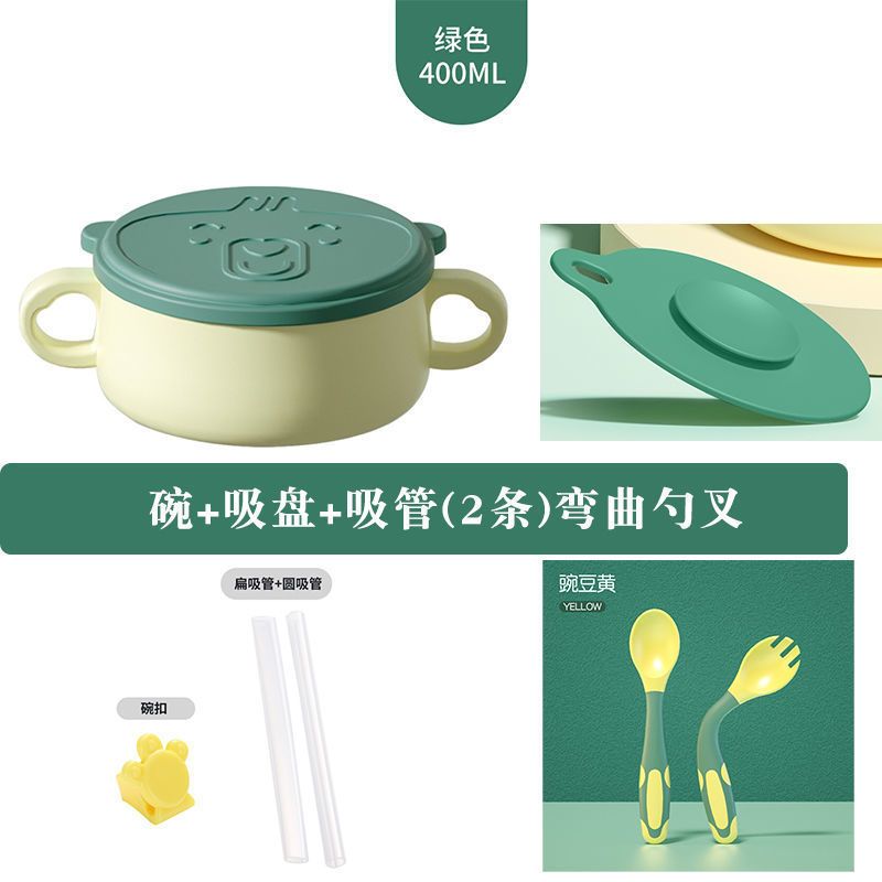 • ♥▲∮⚑분리 그릇 녹색) + 흡입 컵 + 빨대 2-노란색 곡선 스푼 및 포크:;✭✫⚑∮▲♥