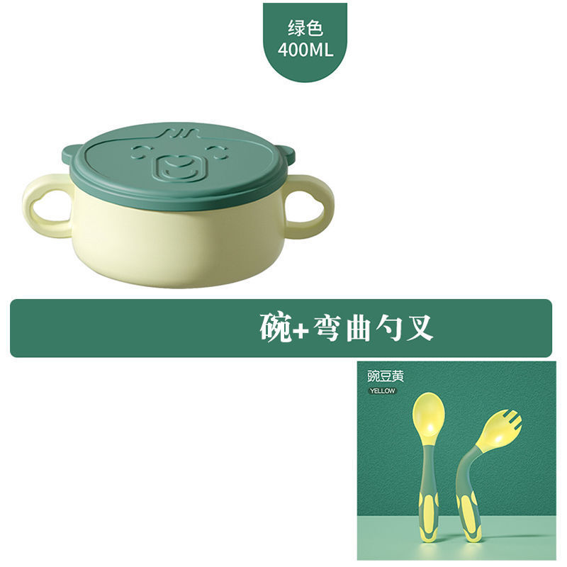 • ♥▲∮⚑분리 그릇(녹색) + 흡입 컵 - 노란색 곡선 스푼 및 포크:;✭✫⚑∮▲♥