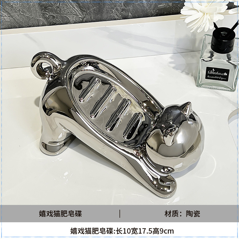 • 실버 [장난꾸러기 고양이] 비누 접시