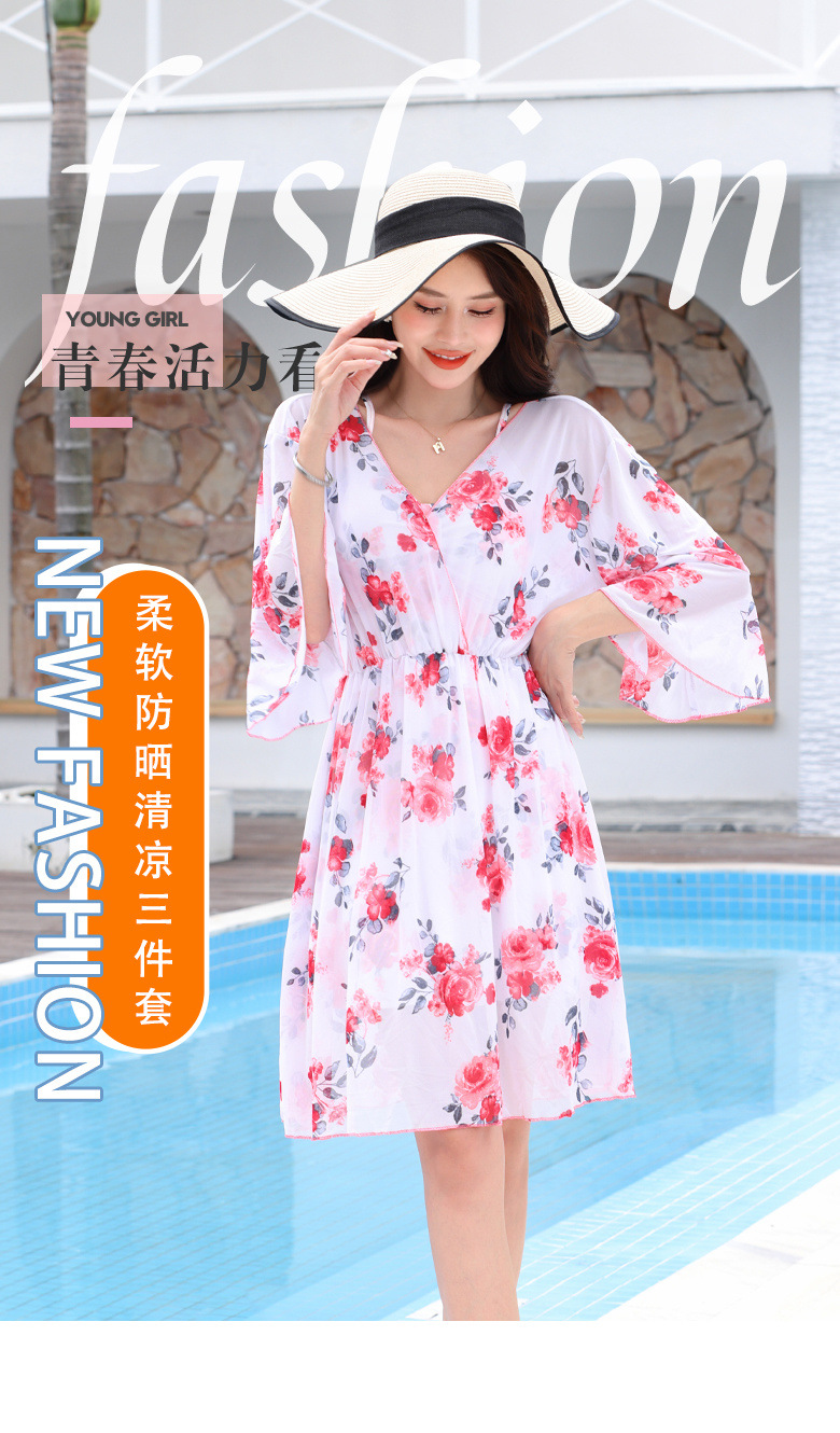 수영복 여성 해변 휴일 분할 플러스 사이즈 200 진 비키니 스커트 3 피스 세트 섹시한 선스크린스토어 가기