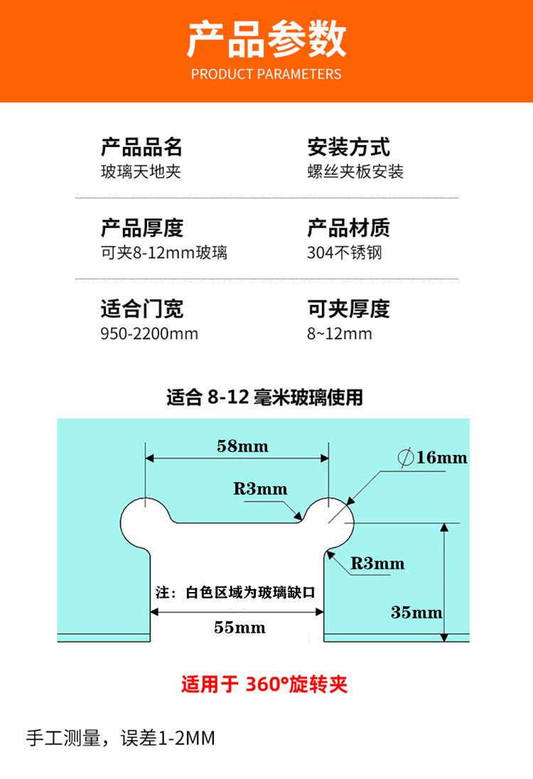 06YM 유리 도어 월드 클램프 360 도 회전 샤프트 304 스테인레스 스틸 블랙 티타늄 로즈 골드 욕실 도어 클램프 전시회스토어 가기