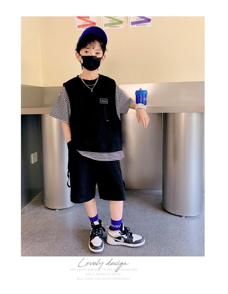 남자들의 여름 가짜 투피스 티셔츠 반바지 투피스 세트 2025 새로운 한국식 탑 스포츠 세트 트렌디스토어 가기
