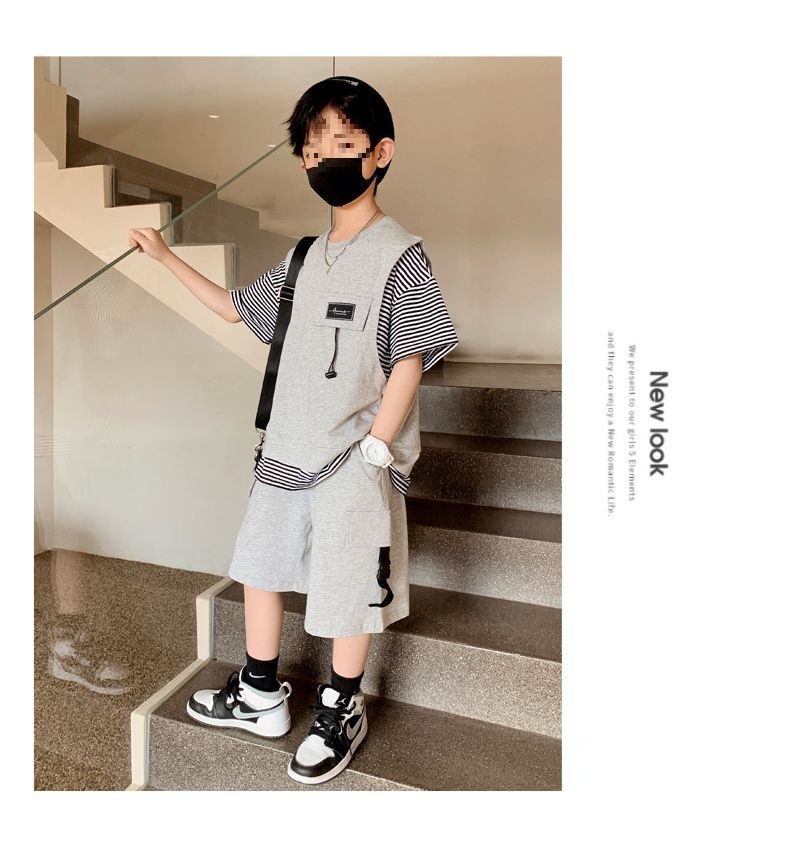 남자들의 여름 가짜 투피스 티셔츠 반바지 투피스 세트 2025 새로운 한국식 탑 스포츠 세트 트렌디