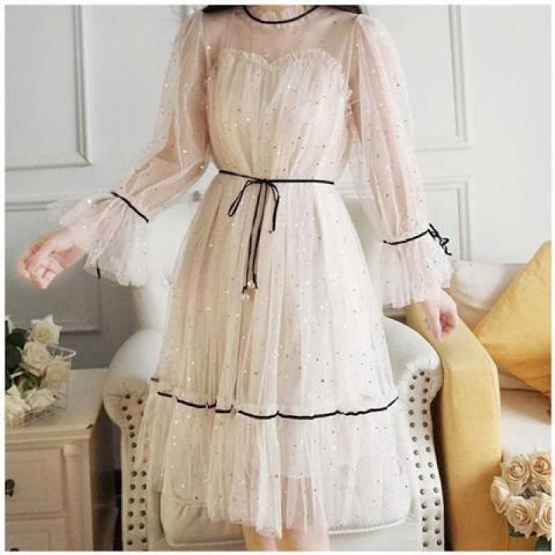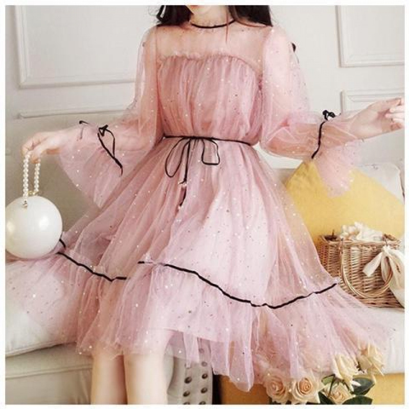 2024 여름 새로운 매우 요정 달콤한 첫 사랑 스커트 작은 신선한 허리 요정 에어 메쉬 원피스 여학생스토어 가기