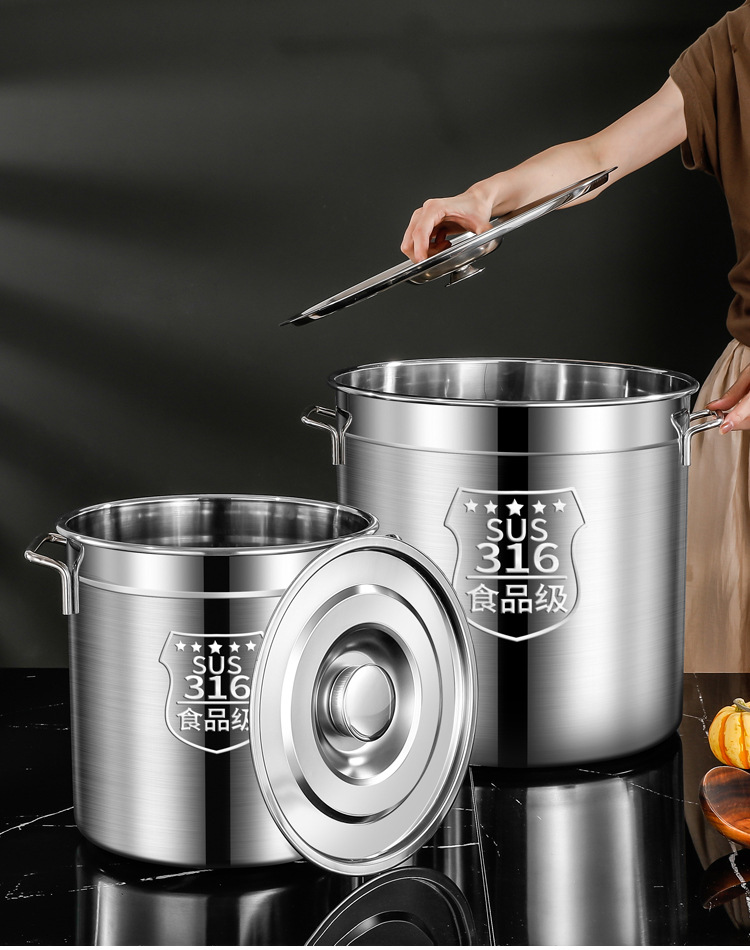 특별 한 두꺼운 316 식품 등급 수프 양동이 뚜껑 상업 라운드 버킷 절인 물 양동이 대용량 수프 냄비 스튜 냄비 가정용 양동이