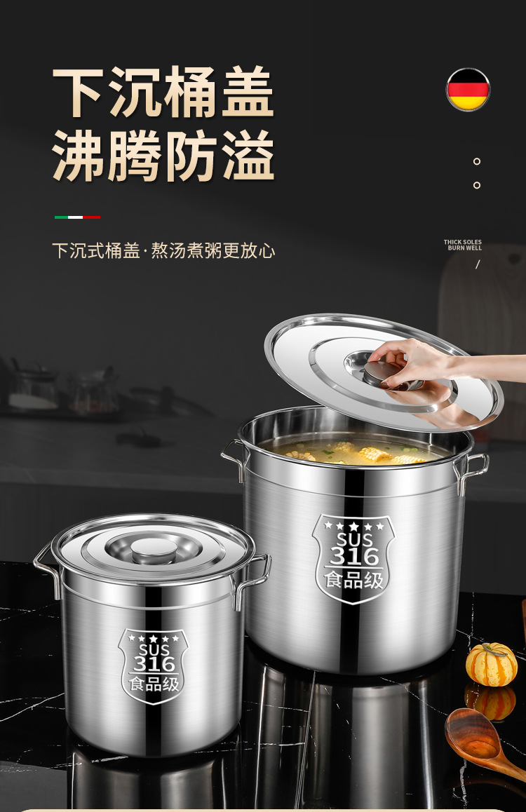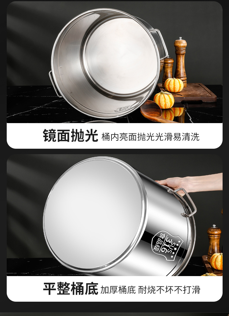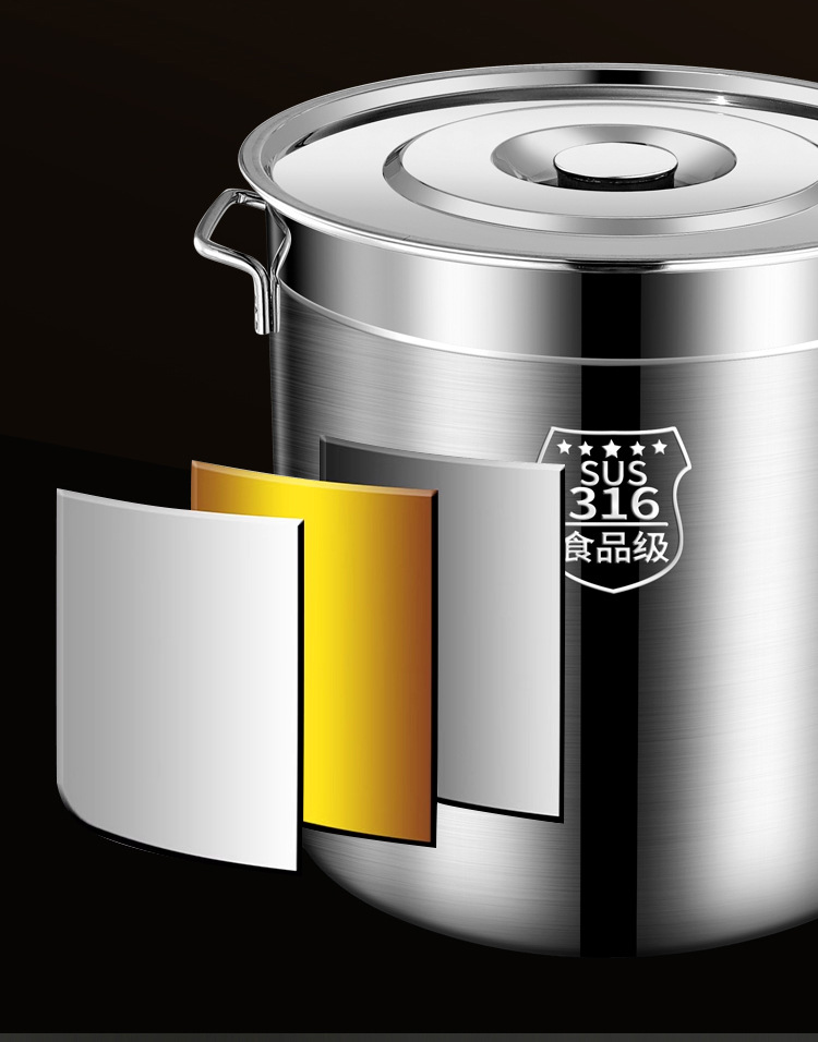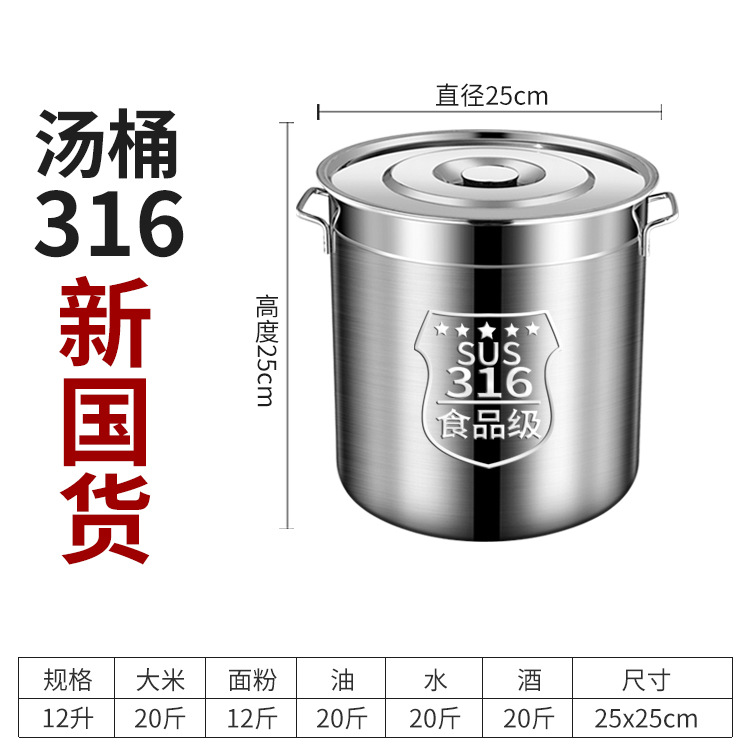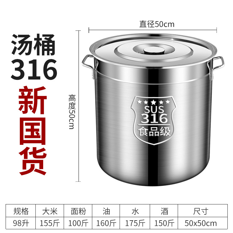 특별 한 두꺼운 316 식품 등급 수프 양동이 뚜껑 상업 라운드 버킷 절인 물 양동이 대용량 수프 냄비 스튜 냄비 가정용 양동이스토어 가기