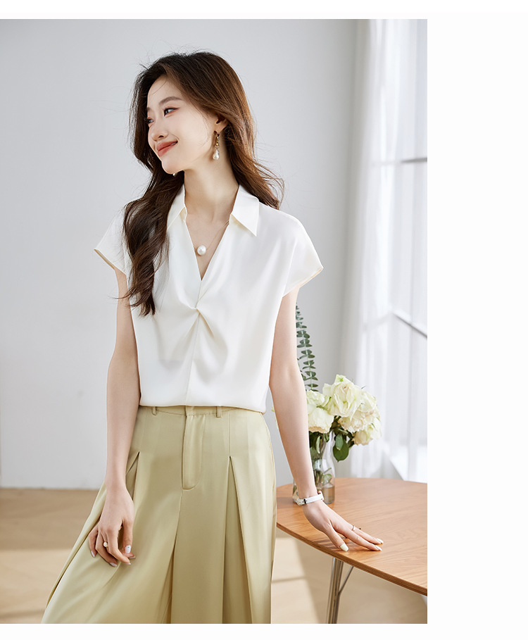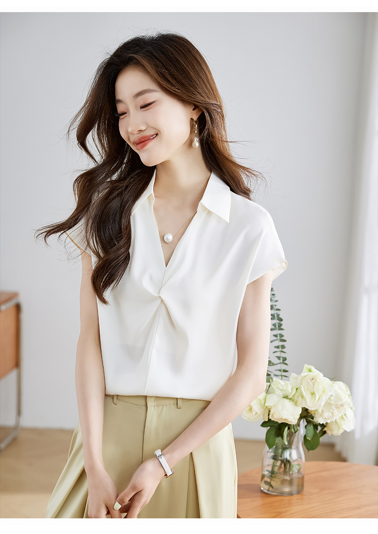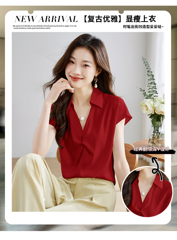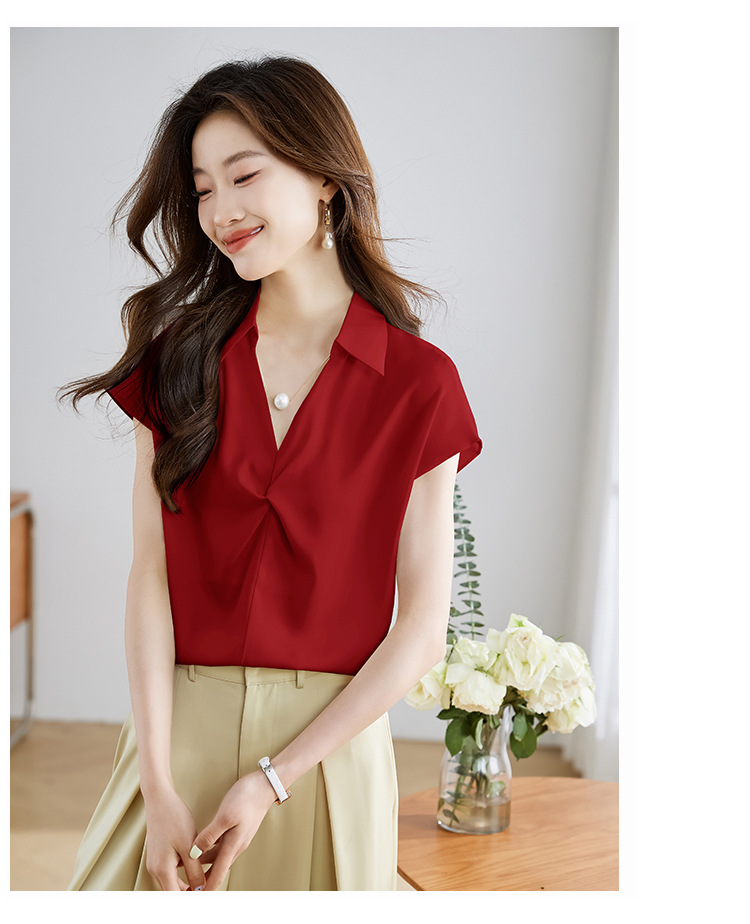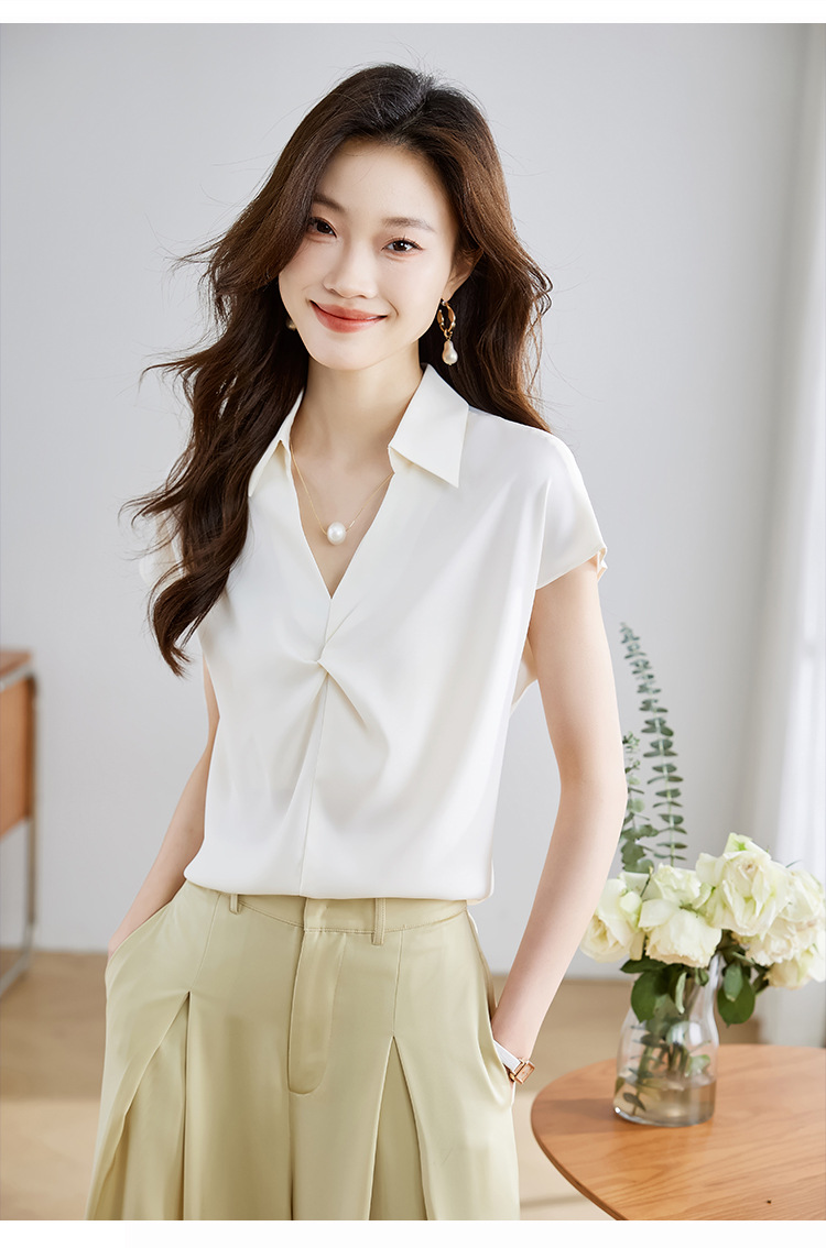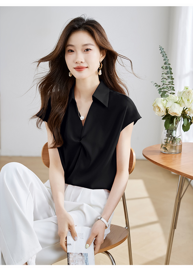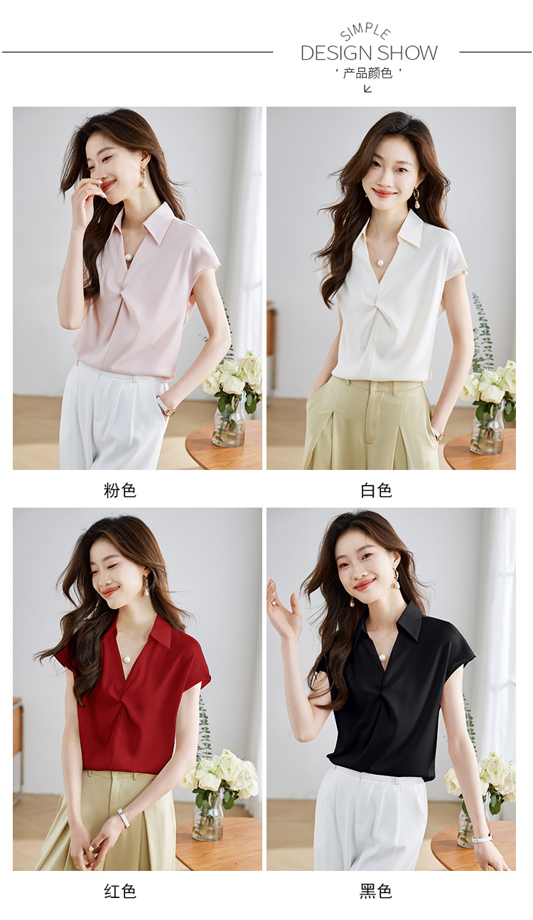 프랑스 스타일 틈새 서양식 반팔 셔츠 여성용 2024 여름 핑크 펄 체인 디자인 센스 전문 통근 탑스토어 가기