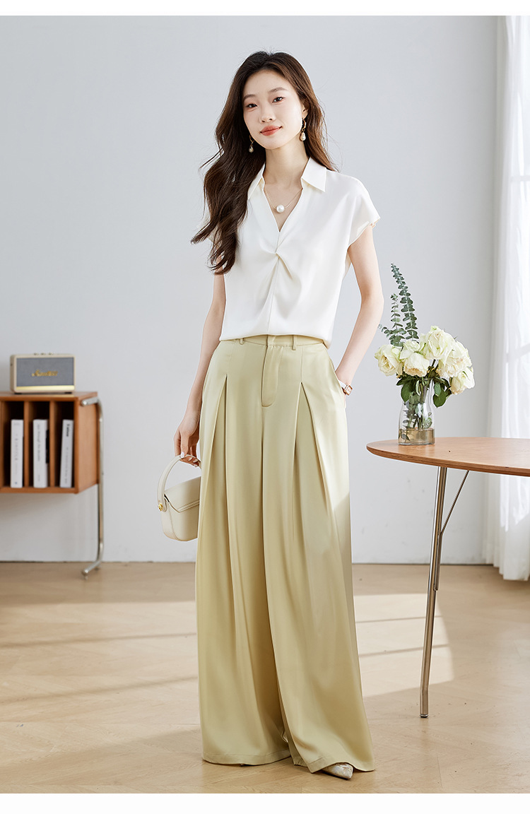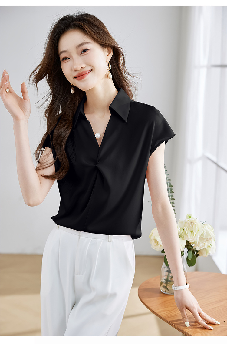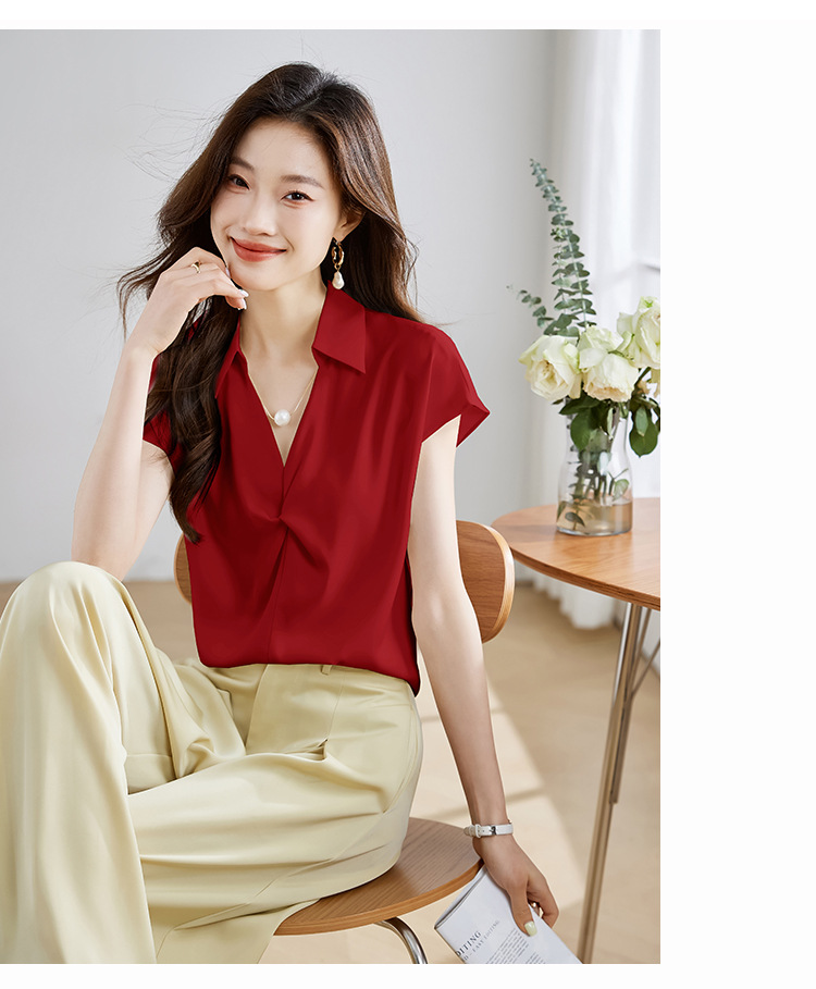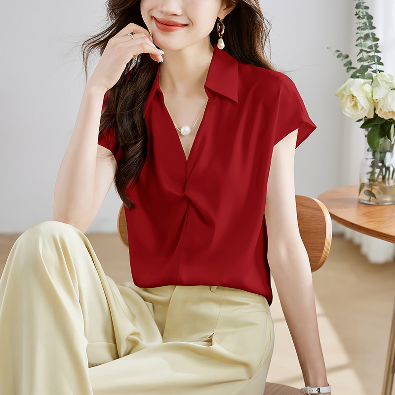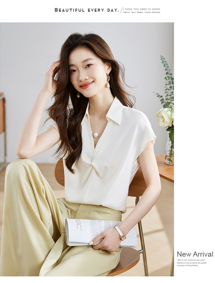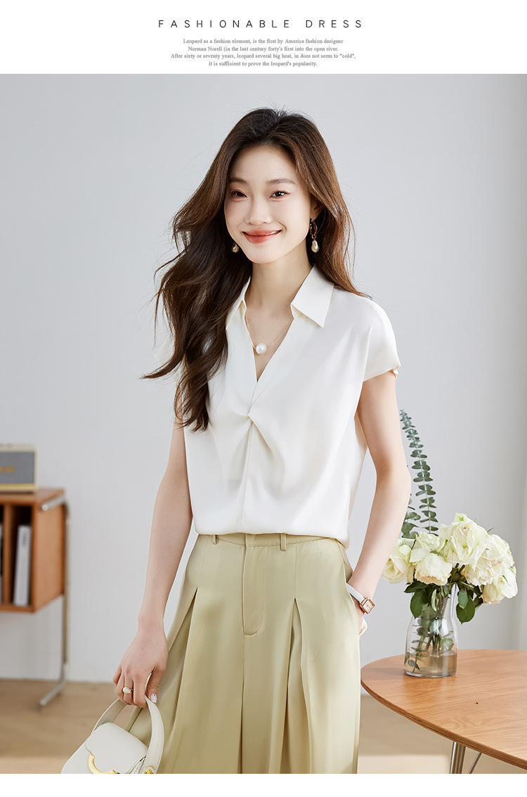 프랑스 스타일 틈새 서양식 반팔 셔츠 여성용 2024 여름 핑크 펄 체인 디자인 센스 전문 통근 탑스토어 가기