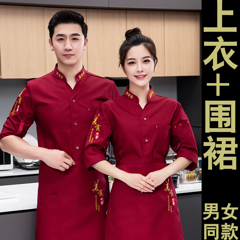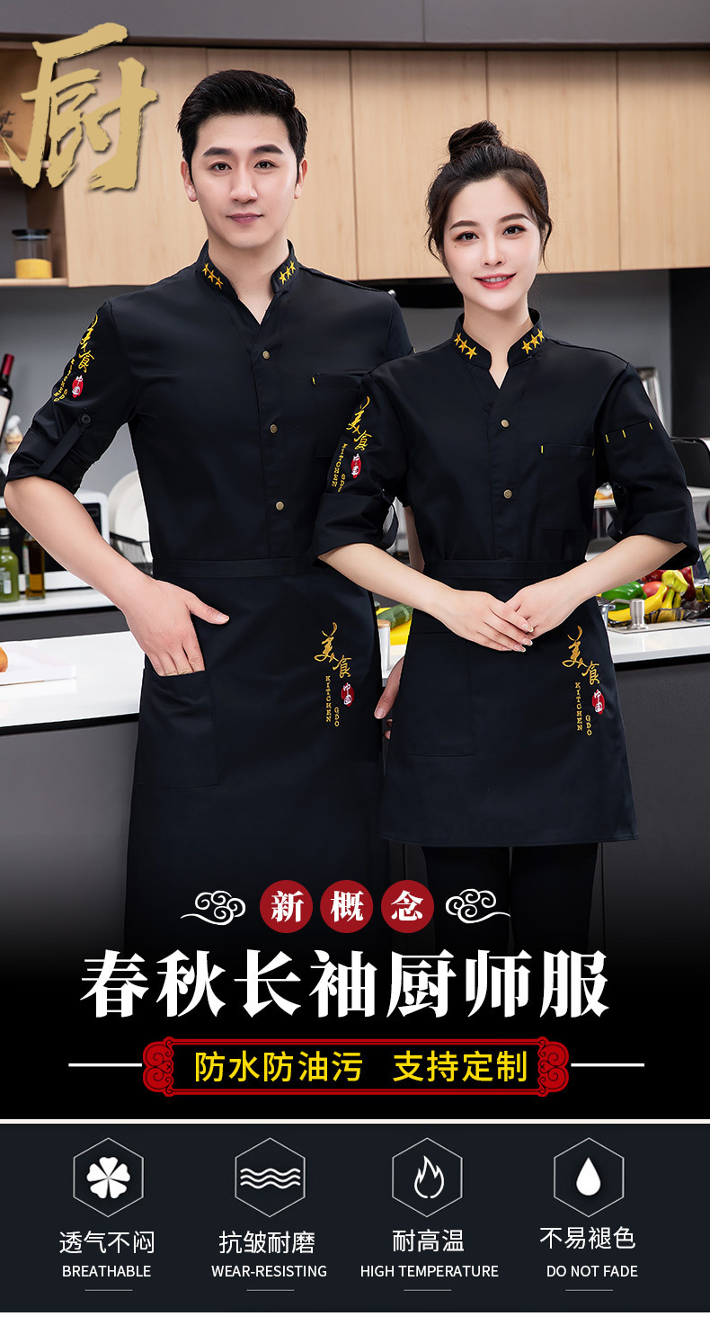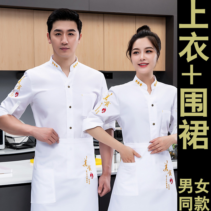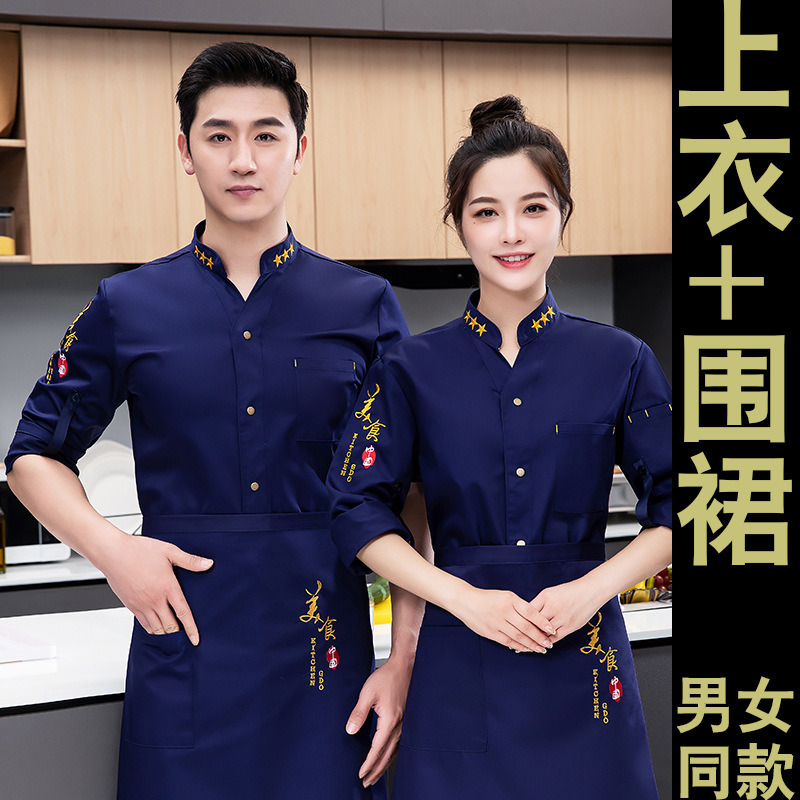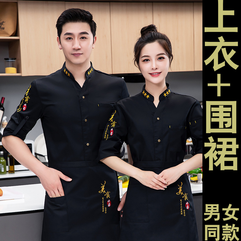 방수 및 내유성 호텔 매통 뚱뚱한 요리사 작업복 남성 긴팔 가을과 겨울 두꺼운 세트 플러스 사이즈스토어 가기