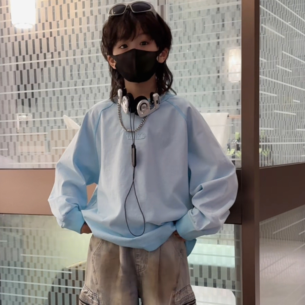 2025 새로운 어린이 유니섹스 티셔츠 큰 어린이 3 차원 컷 아웃 염료 디자인 느슨한 캐주얼 웨스턴 스타일 긴 소매스토어 가기