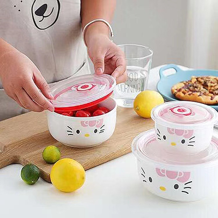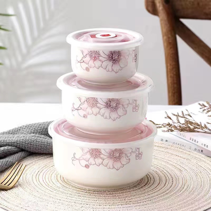 세라믹 신선한 보울 대형 3 피스 세트 신선한 보관 상자 밀폐형 학생 벤튼, 전자 레인지 용 뚜껑스토어 가기