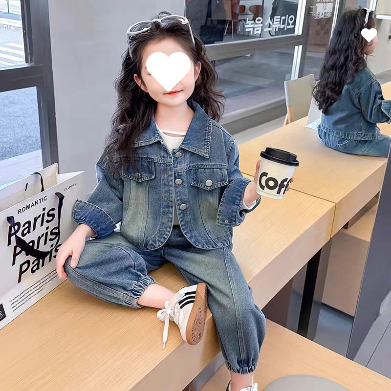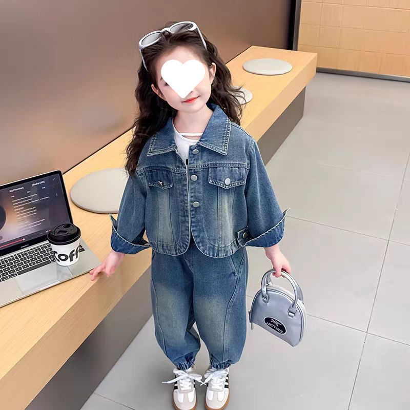 소녀 데님 세트 봄과 가을 2025 새로운 서양식 유행 어린이 한국 스타일 봄 원피스 소녀 패션 투피스 세트스토어 가기