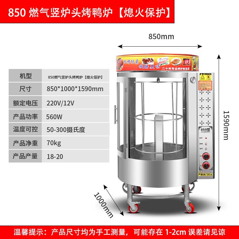 로스트 오리 스토브 상업용 850 로스트 생선 가스 숯 로스트 치킨 다리 양고기 가정용 전기 로스트 오리 스토브 자동 회전