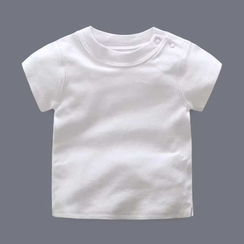 아기 코튼 화이트 반팔 티셔츠 소년 소녀 아기 단색 어린이 옷 여름 반스토어 가기