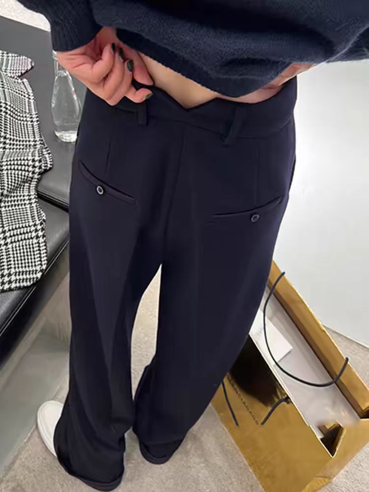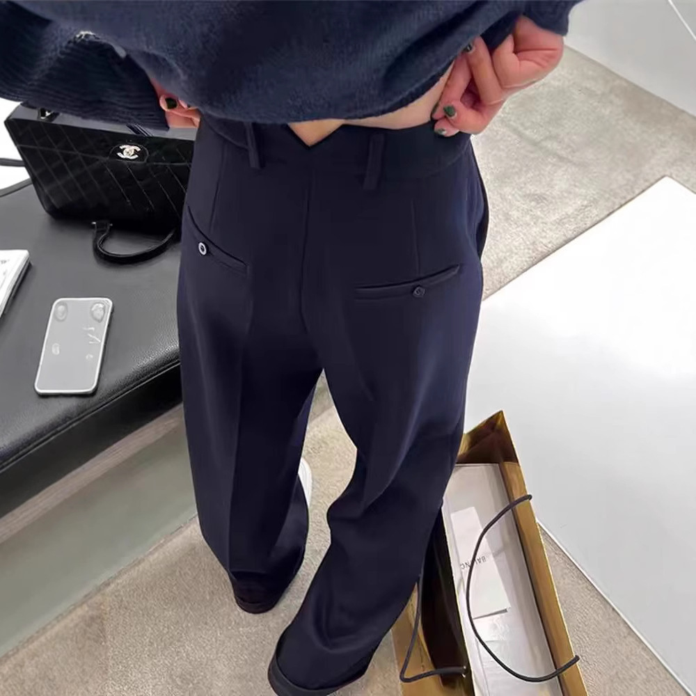 藏蓝色西装阔腿裤女春秋小个子网红穿搭高腰垂感直筒裤休闲拖地裤