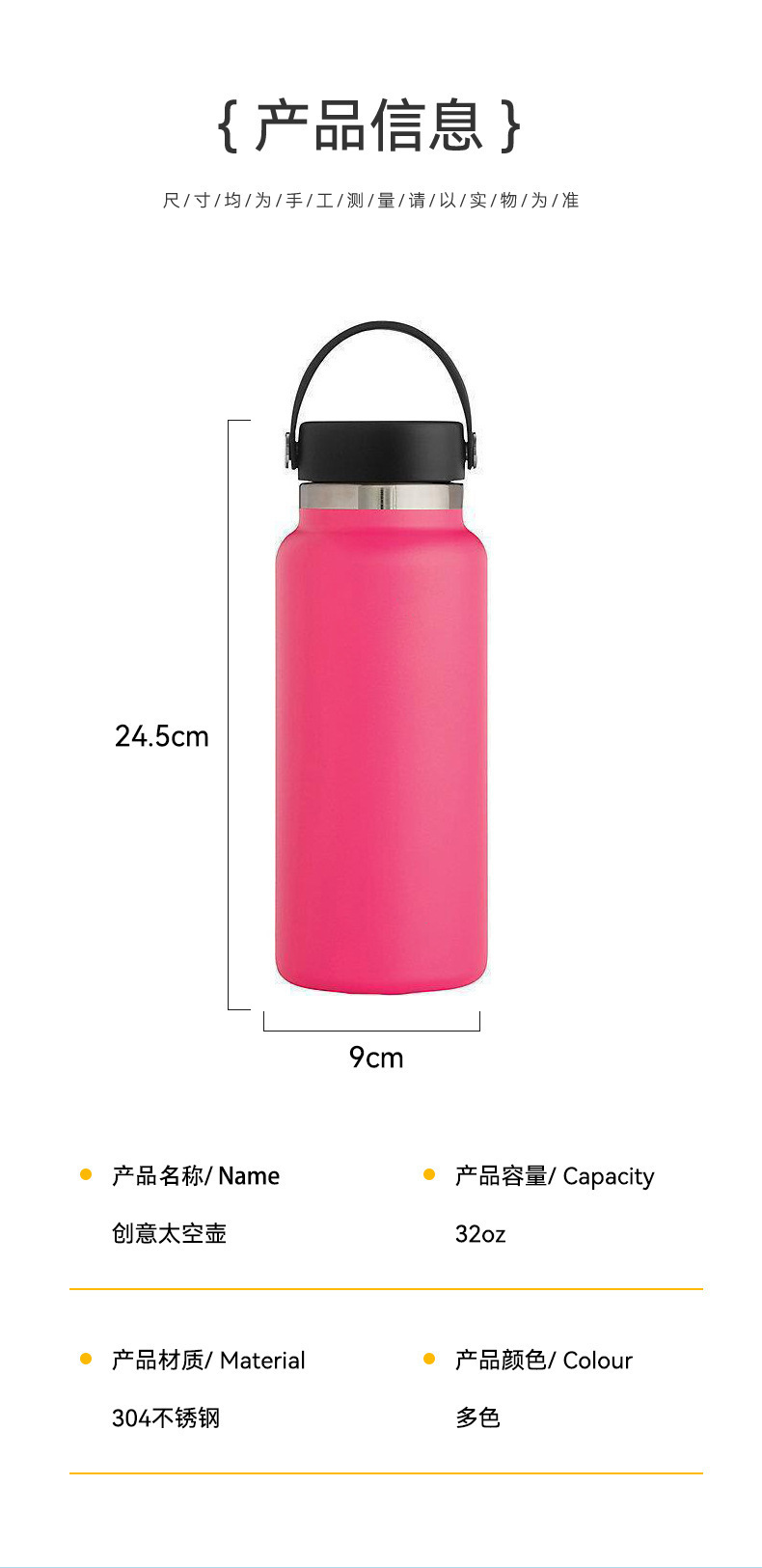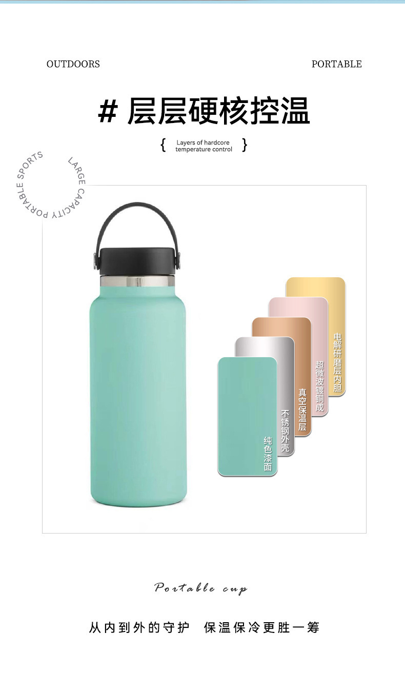 국경 304 스테인레스 스틸 진공 보온병 컵 대용량 휴대용 야외 스포츠 물병 자동차 등산 공간 냄비