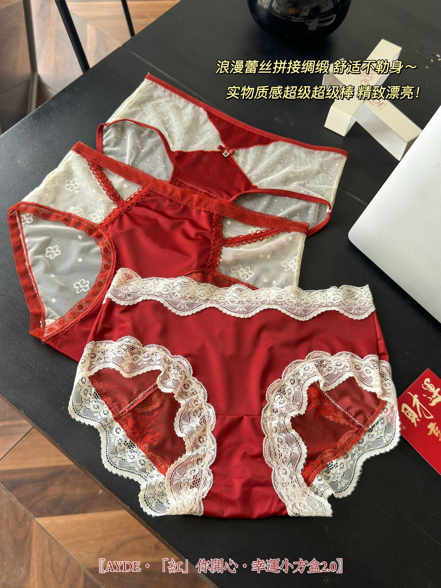 여자를 위한 발목 붉은 섹시한 레이스 새틴 팬티 순수한 2025 여성을위한 새로운 결혼식 브리프스토어 가기