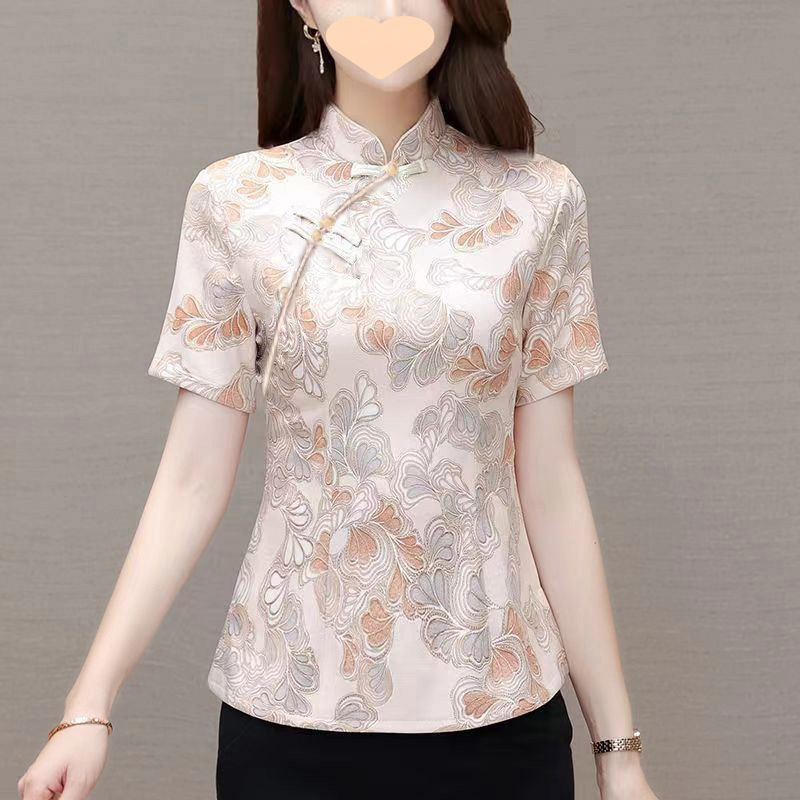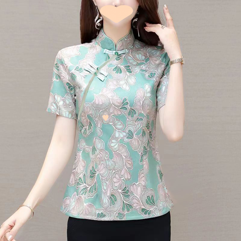 수정 된 청삼 반팔 얇은 톱 여성 인쇄 여름 뉴 에이지 감소 우아한 모성 스타일 셔츠베이스스토어 가기