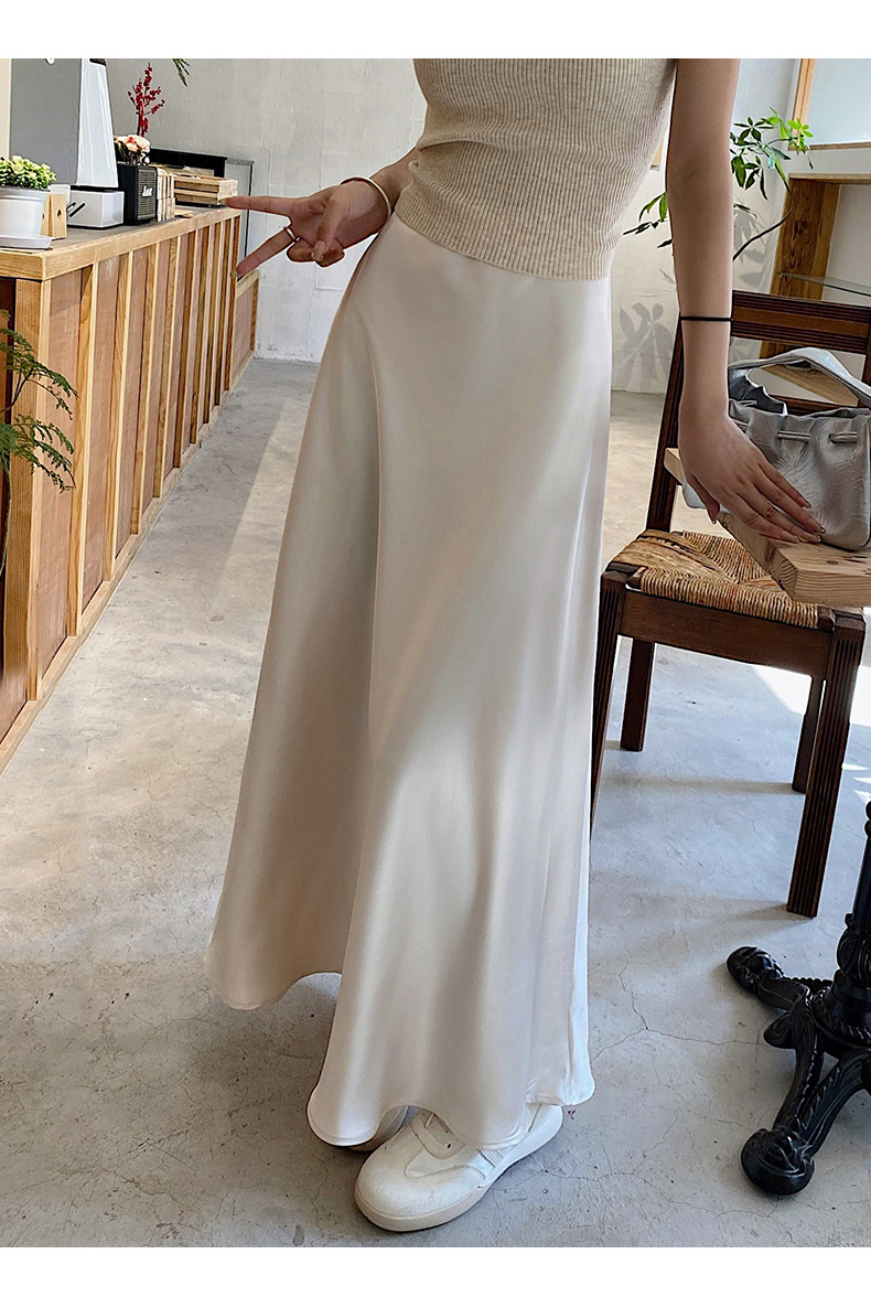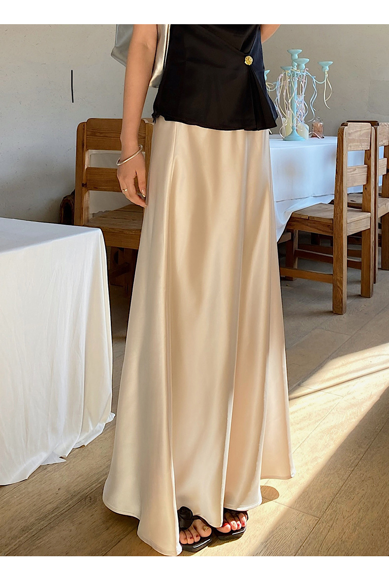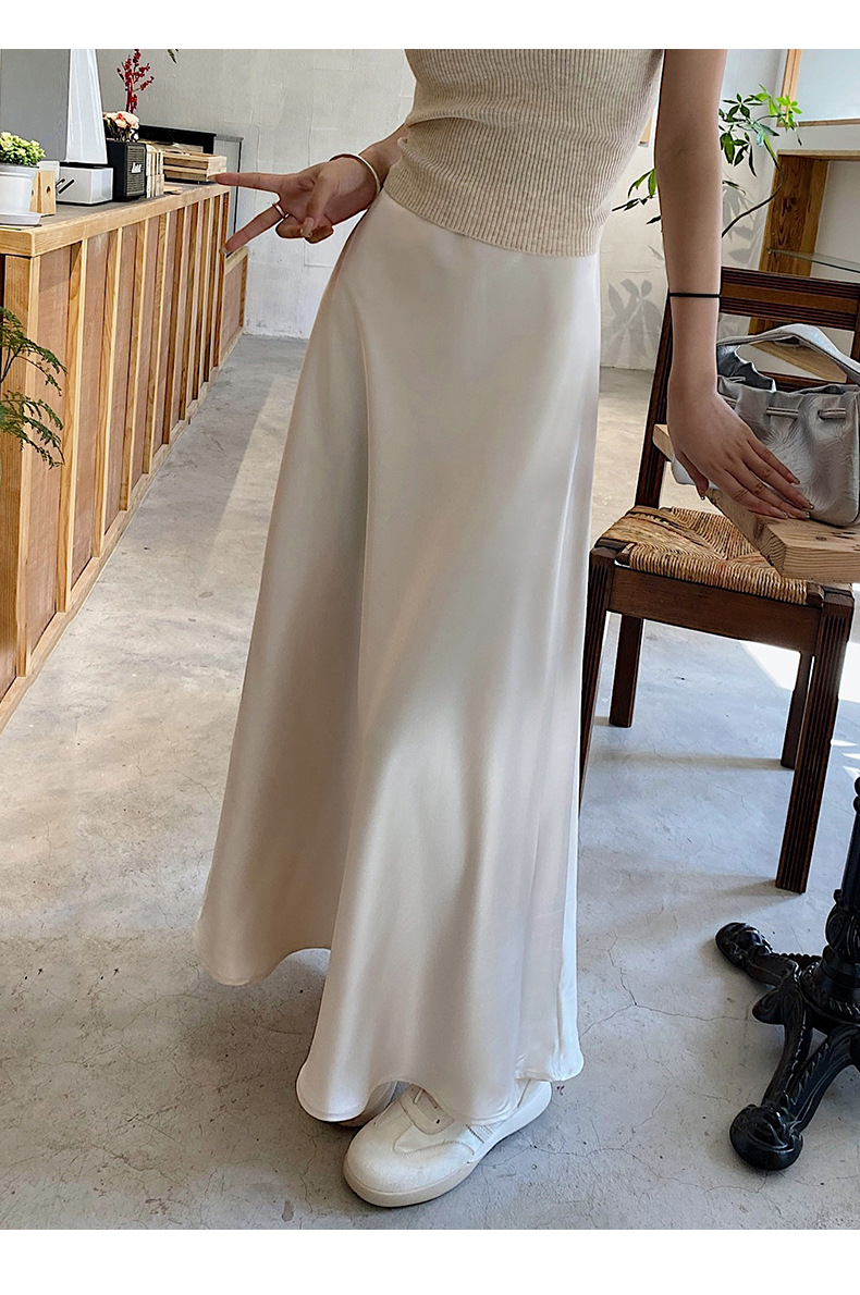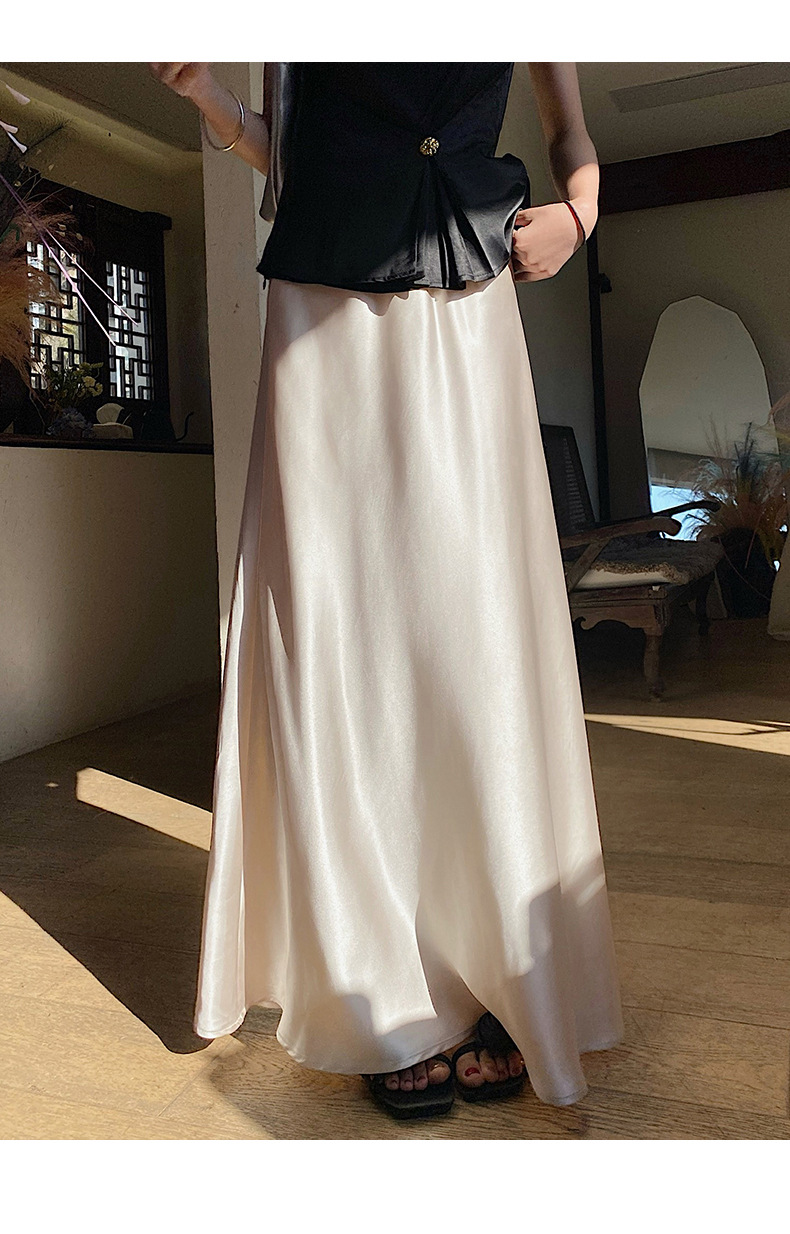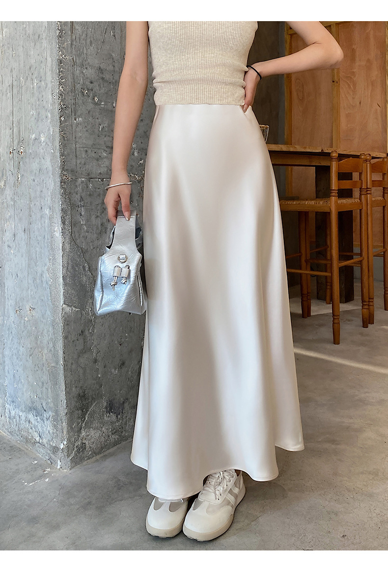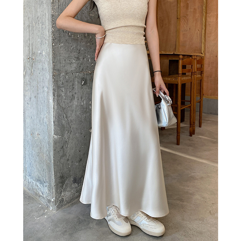 화이트 Acetic Acid Satin 스커트 여성의 봄과 여름 새로운 2025 중간 길이의 힙 피쉬 스커트 우아한 A 라인 스커트스토어 가기