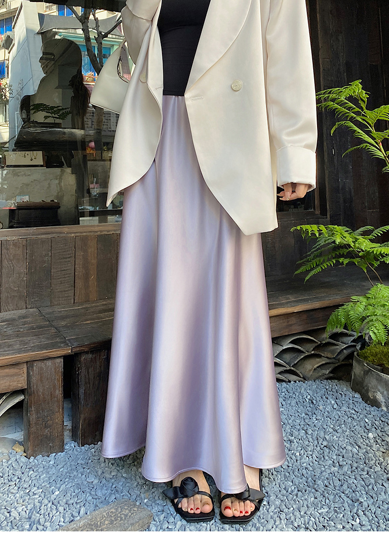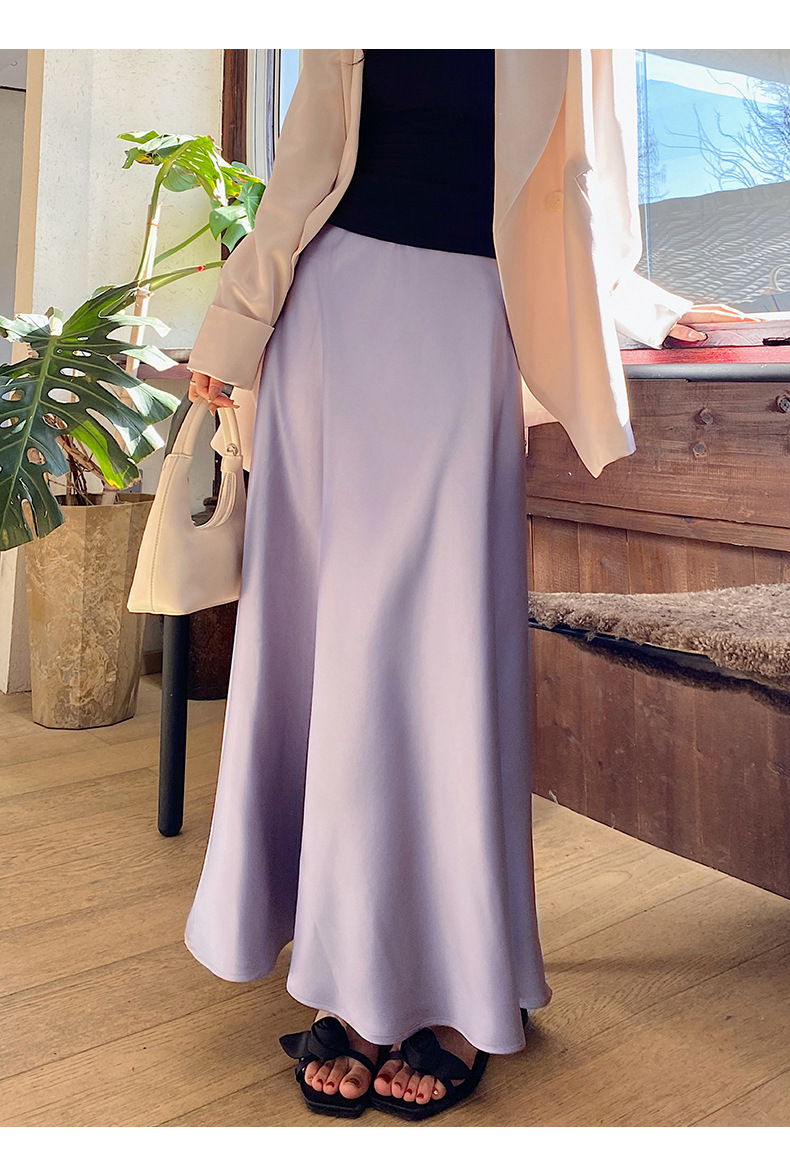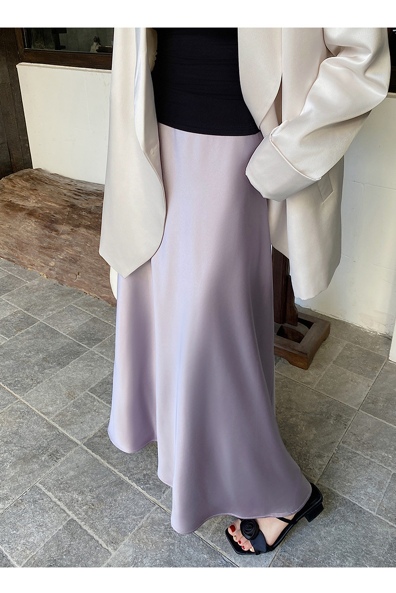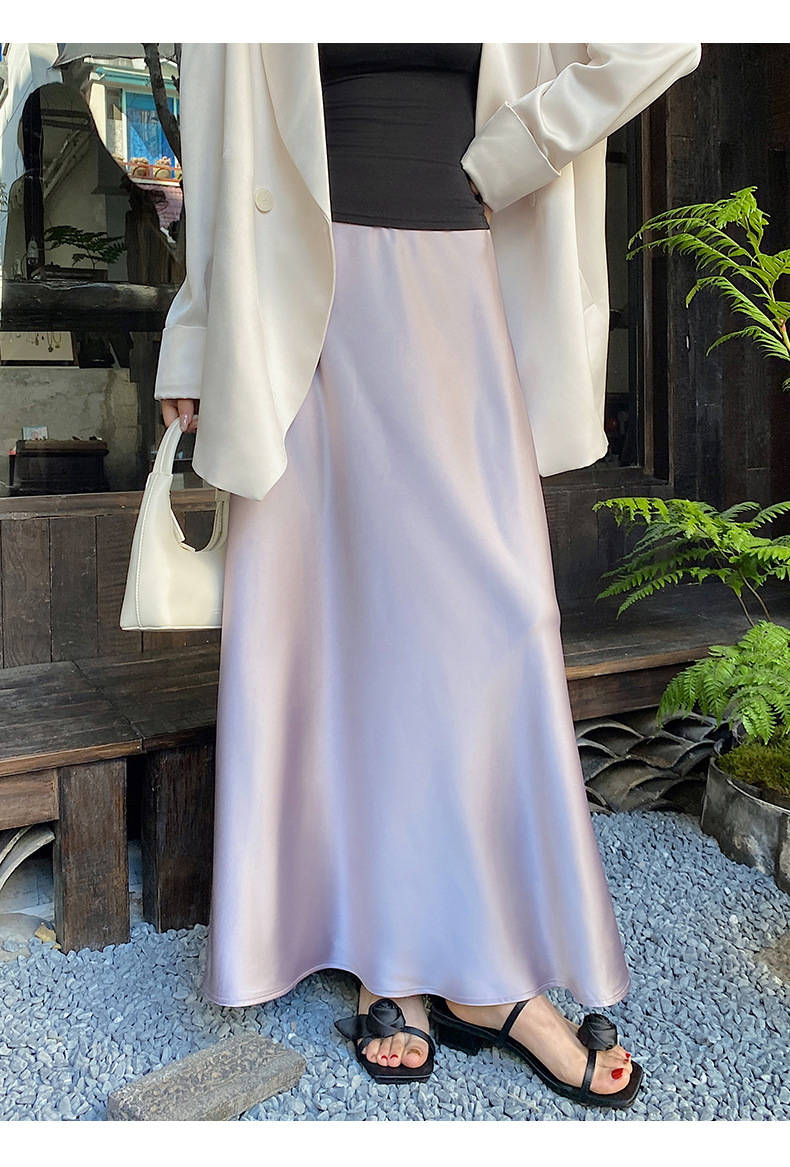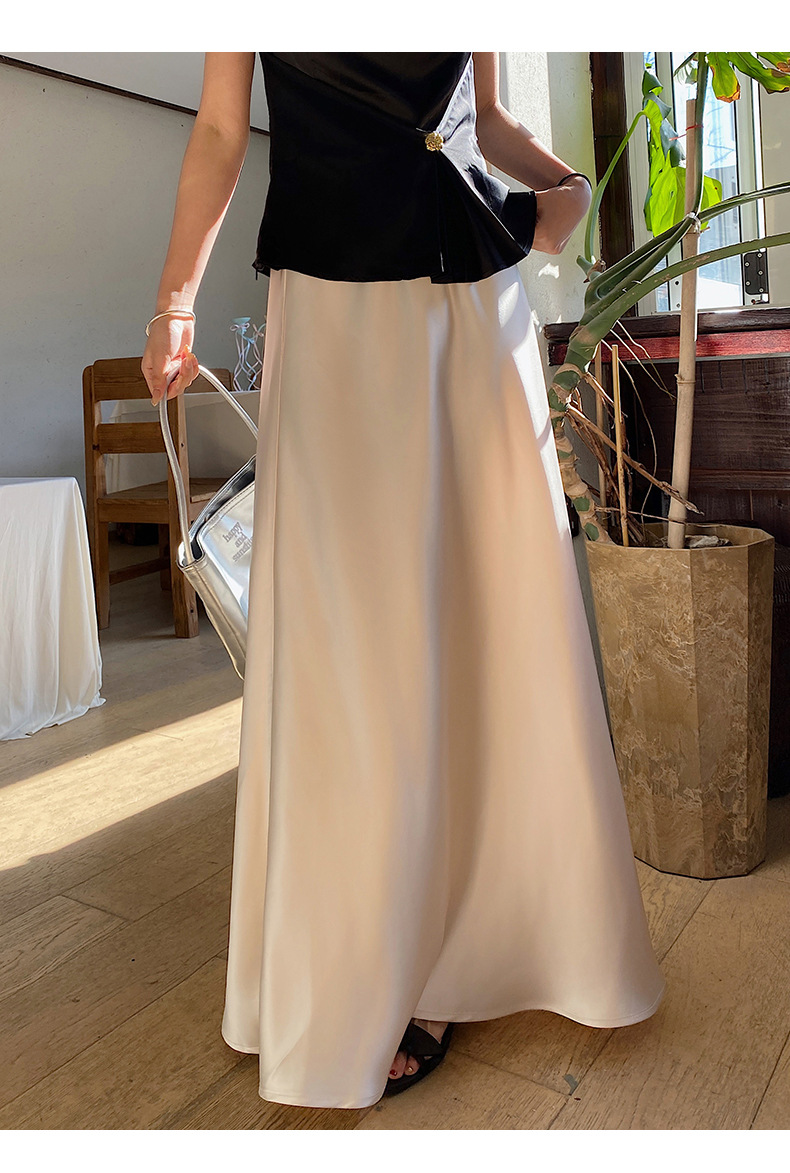 화이트 Acetic Acid Satin 스커트 여성의 봄과 여름 새로운 2025 중간 길이의 힙 피쉬 스커트 우아한 A 라인 스커트스토어 가기