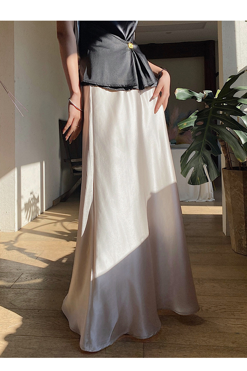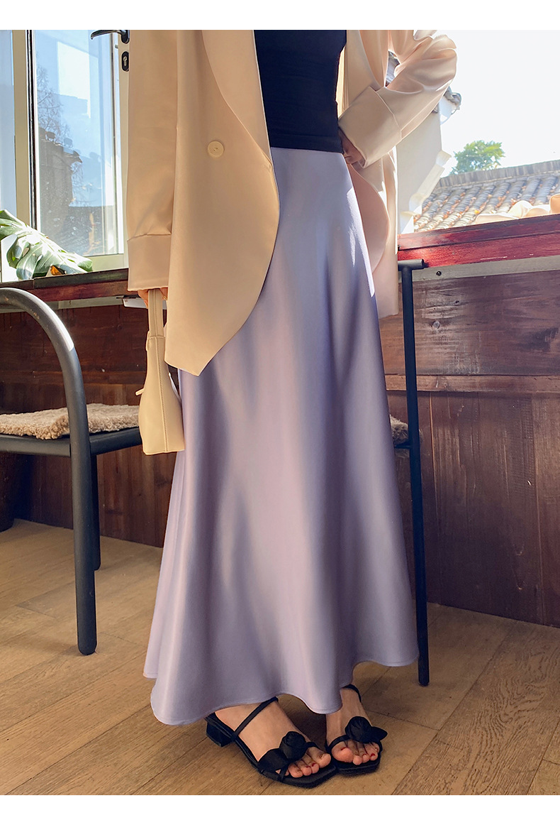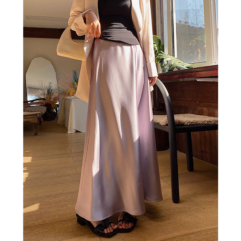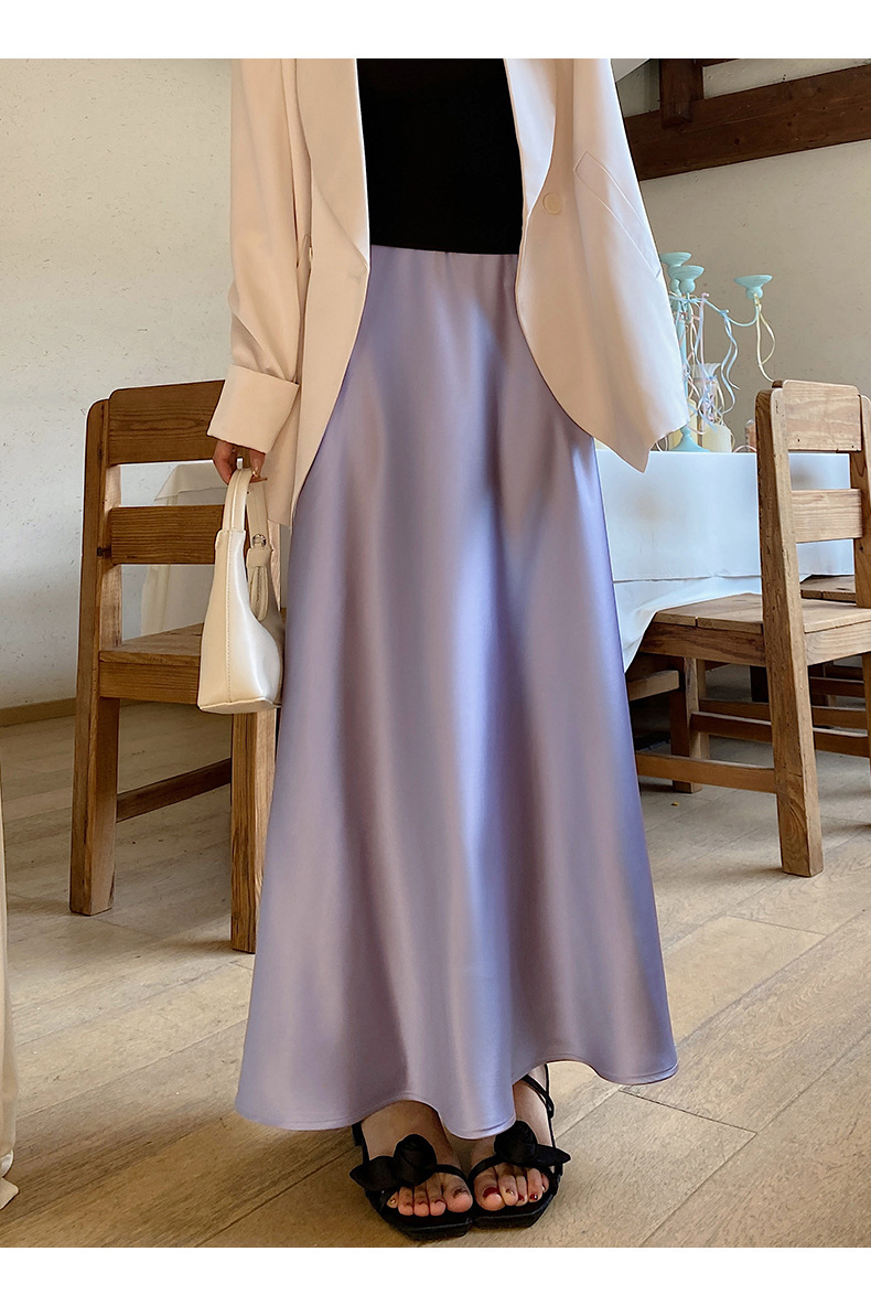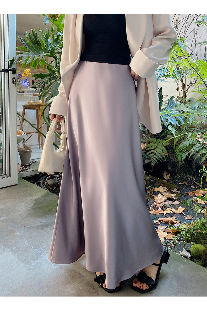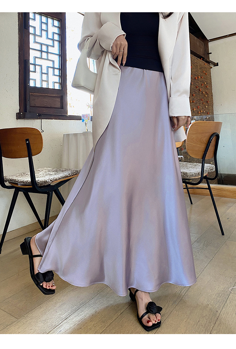화이트 Acetic Acid Satin 스커트 여성의 봄과 여름 새로운 2025 중간 길이의 힙 피쉬 스커트 우아한 A 라인 스커트스토어 가기