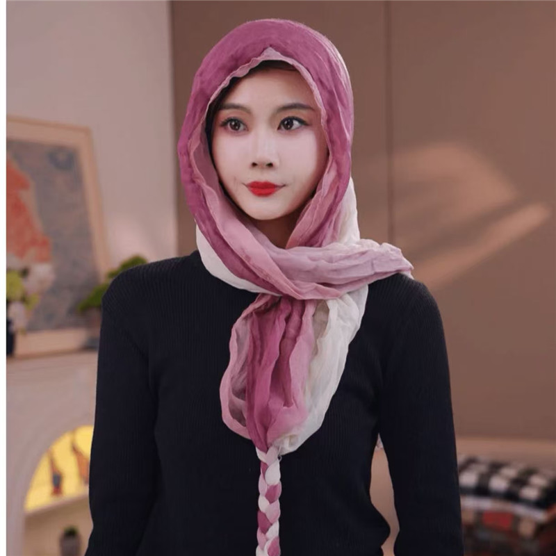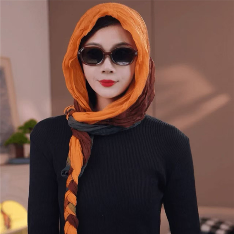새로운 컬러 매칭 땋은 머리 가을 터번 여행 사진 서양 패션 올 매치 기질 스카프 목도리
