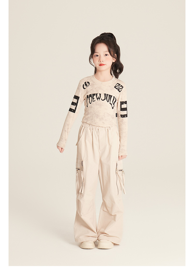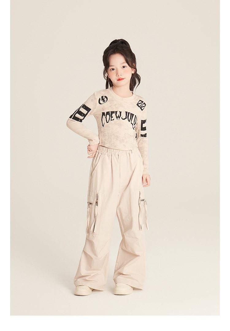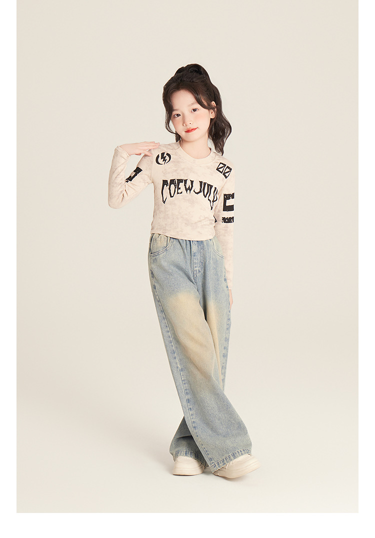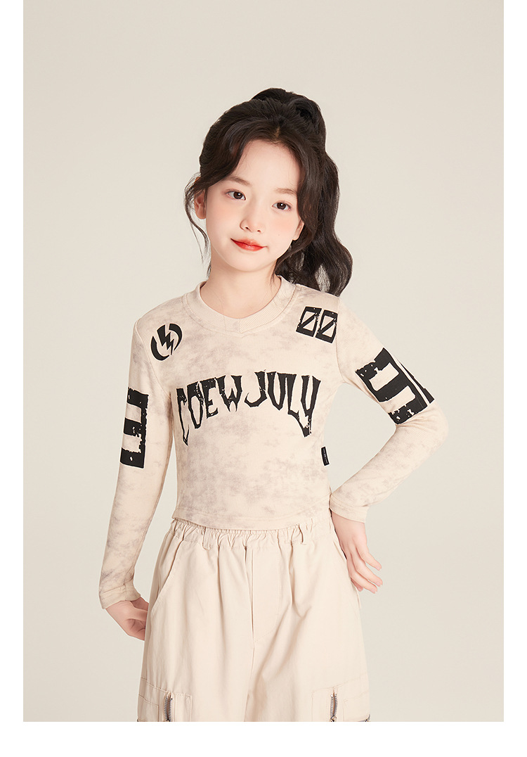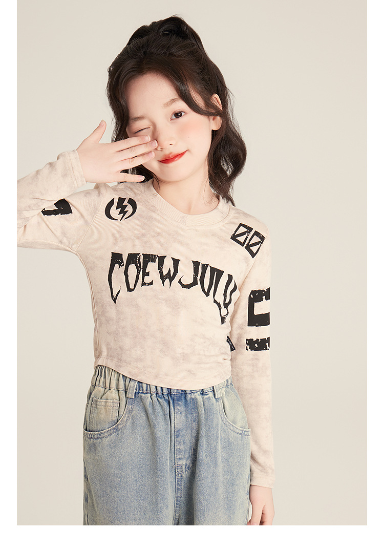 Amybaby Girls 'Top Spring 2025 새로운 패션 V-Neck 우아한 짧은 타이-염료 긴 소매 탑