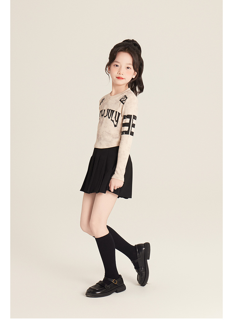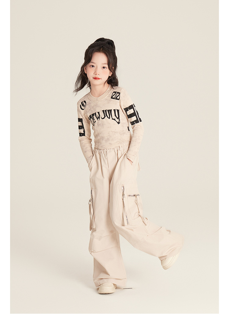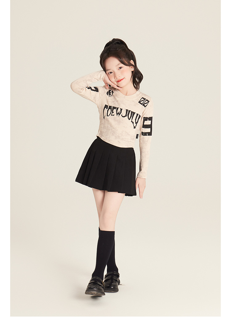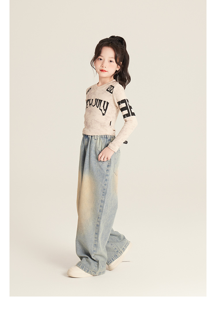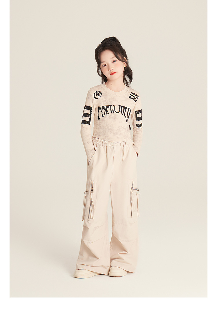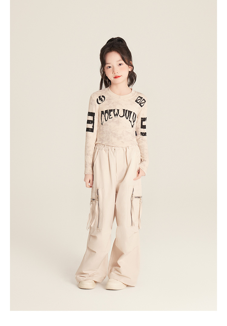 Amybaby Girls 'Top Spring 2025 새로운 패션 V-Neck 우아한 짧은 타이-염료 긴 소매 탑