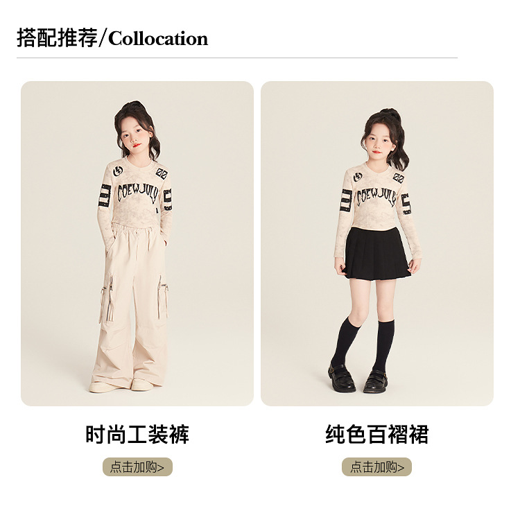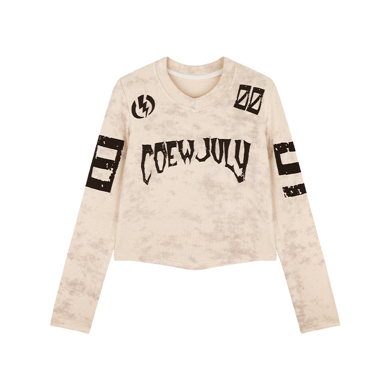 Amybaby Girls 'Top Spring 2025 새로운 패션 V-Neck 우아한 짧은 타이-염료 긴 소매 탑스토어 가기