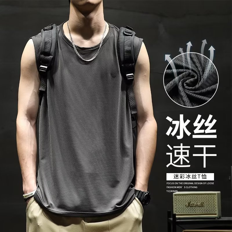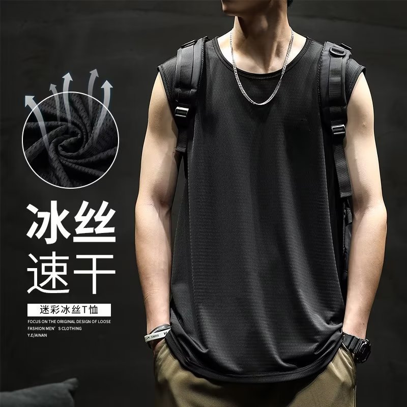 여름 아이스 실크 민소매 조끼 남자 허리 코트 빠른 건조 얼음 느낌 느슨한 플러스 사이즈 남자 스포츠 농구 피트니스 티셔츠스토어 가기