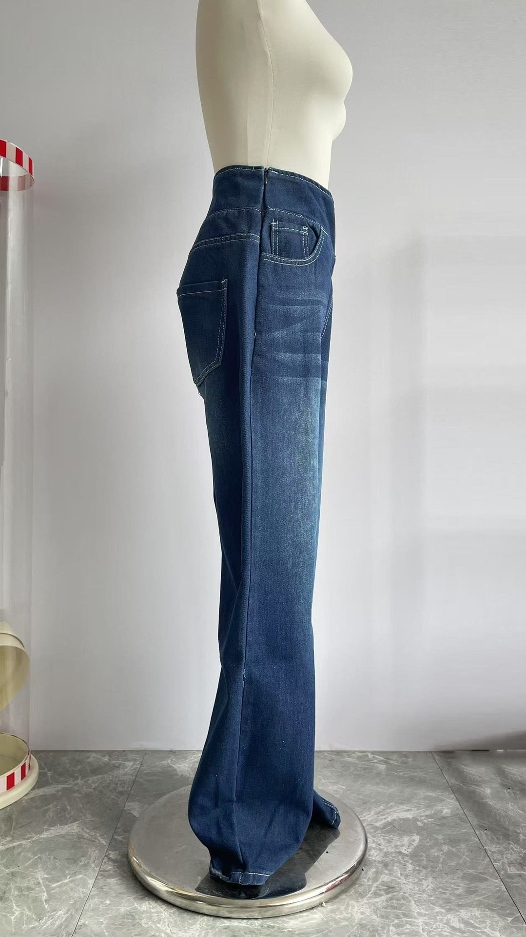 국경 간 새 플러스 사이즈 데님 넓은 다리 바지 여성용 높은 허리 슬리밍 멀티 포켓 스트레이트 느슨한 고양이 수염 캐주얼 바지스토어 가기