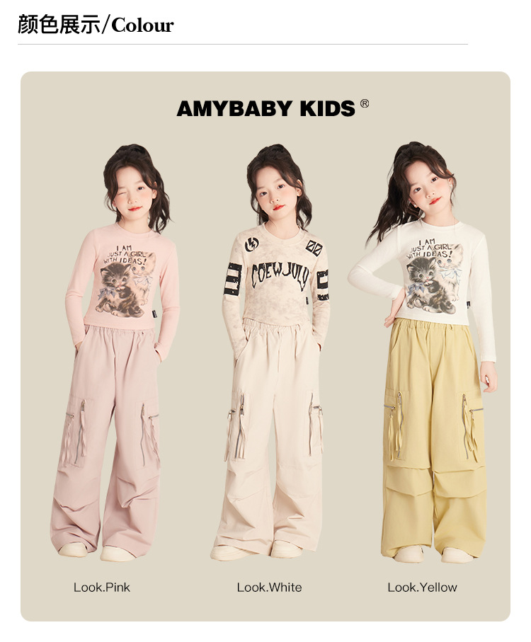 Amybaby 여자 바지 봄 2025 새로운 미국 단색 내마모성 캐주얼 바지