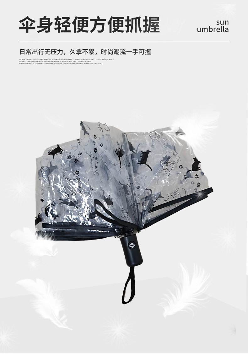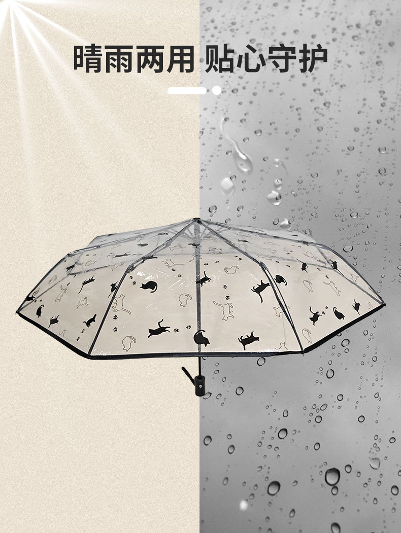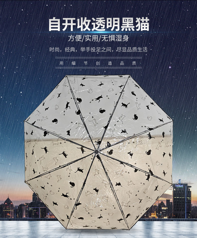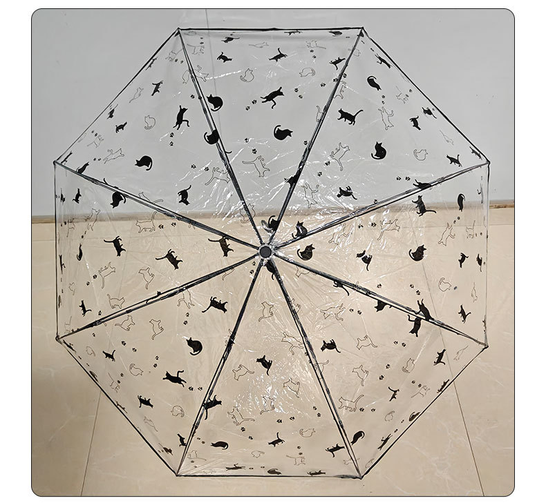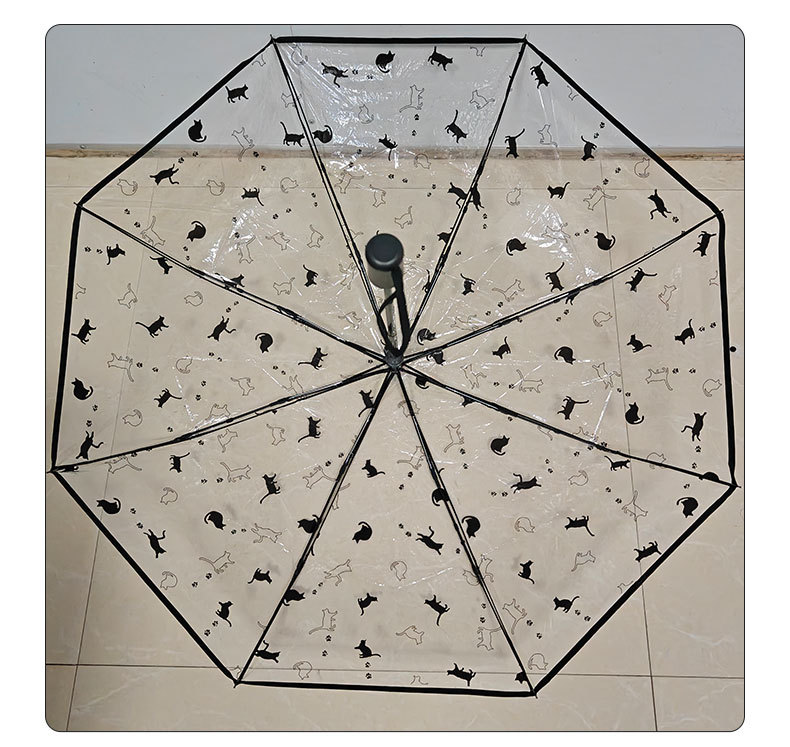 투명 우산 인터넷 인기있는 크레용 작은 새 우산 자동 귀여운 고양이 창조적 인 신선한 어린이 성인 접는 우산스토어 가기