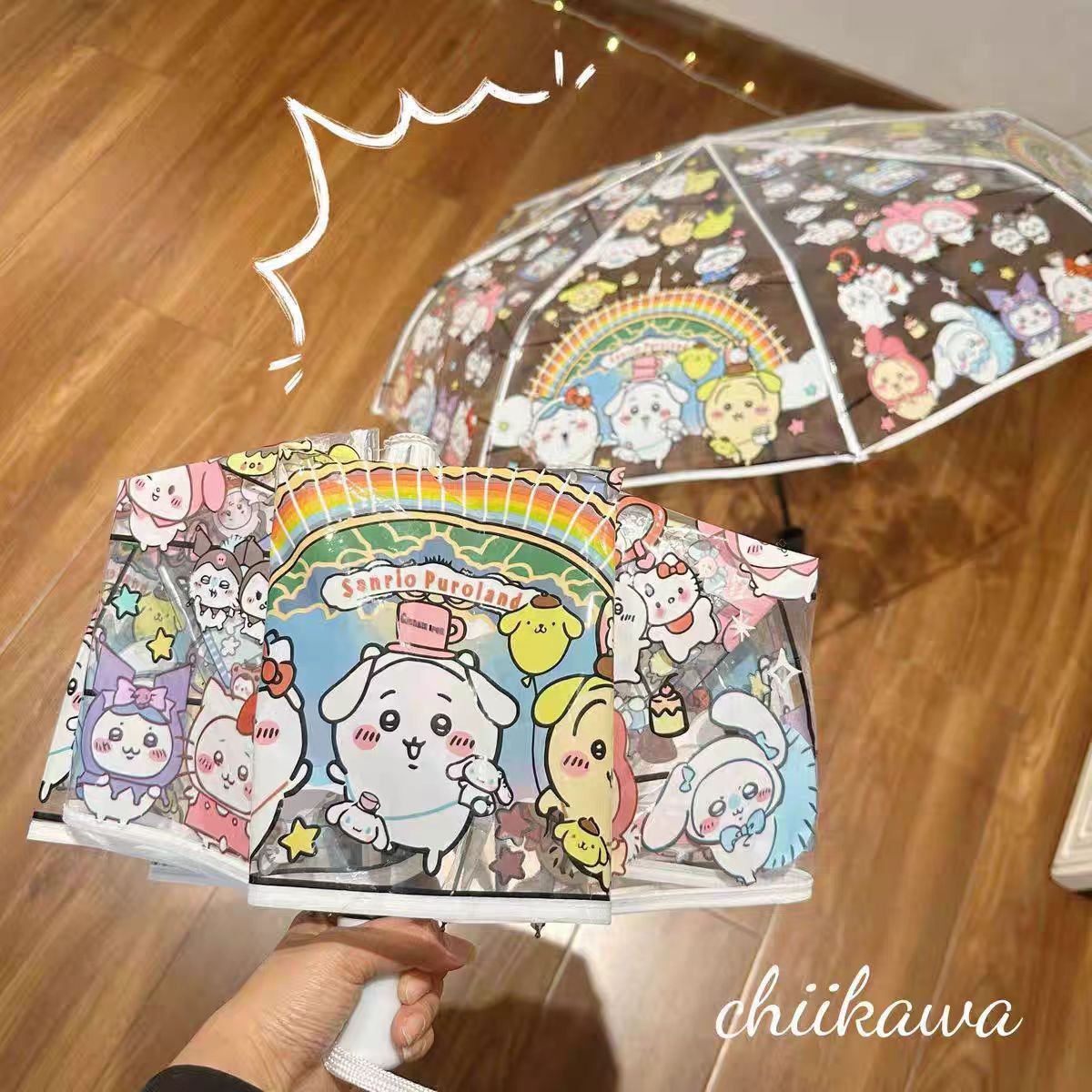 투명 우산 인터넷 인기있는 크레용 작은 새 우산 자동 귀여운 고양이 창조적 인 신선한 어린이 성인 접는 우산