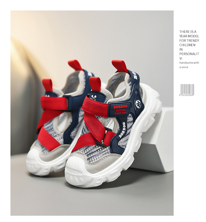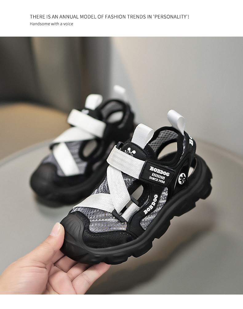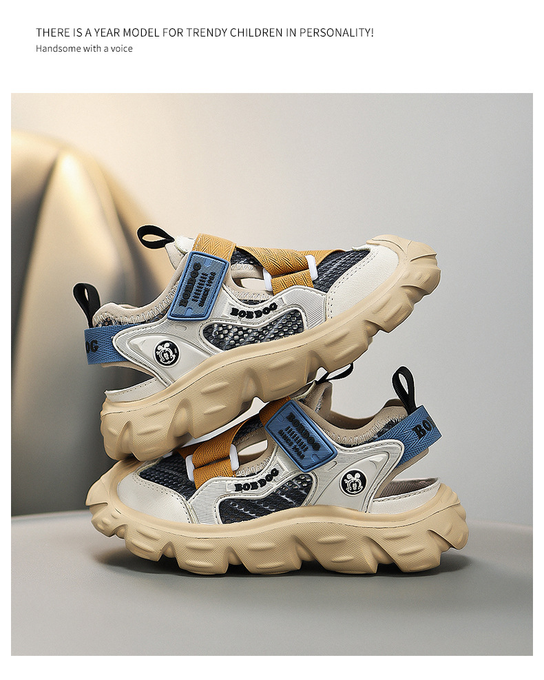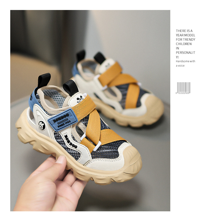 바부 콩 소년 신발 스포츠 샌들 2025 여름 새로운 어린이 발가락 샌들 미끄럼 통기성 프레임 샌들