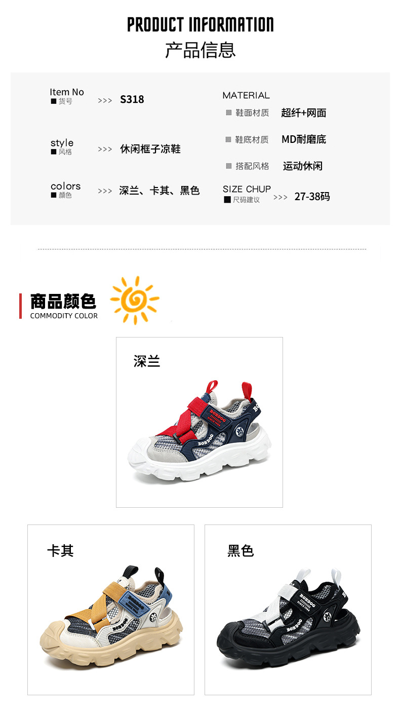 바부 콩 소년 신발 스포츠 샌들 2025 여름 새로운 어린이 발가락 샌들 미끄럼 통기성 프레임 샌들스토어 가기