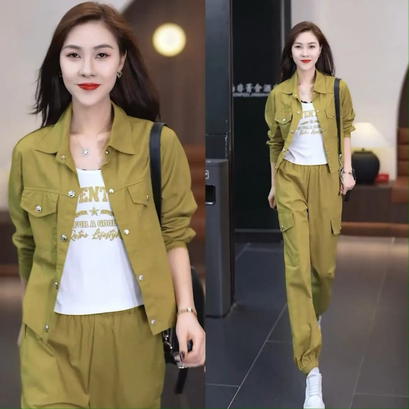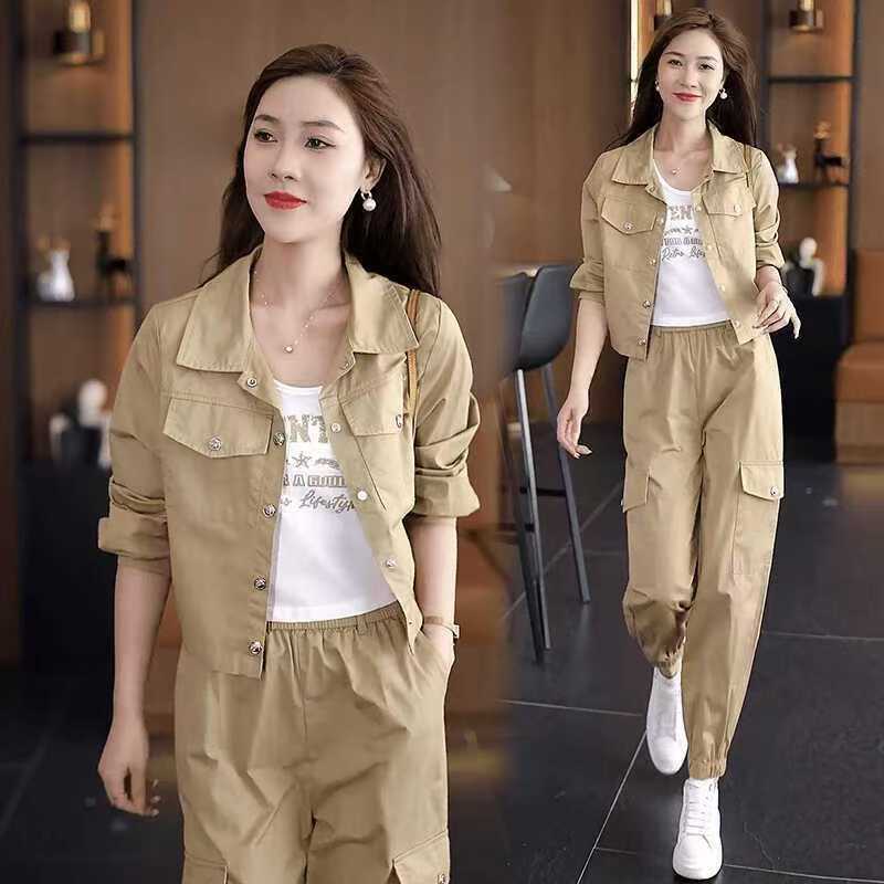 플러스 사이즈 300 진 통통녀 스포츠 세트 여성 봄과 가을 새로운 한국 패션 재킷 캐주얼 루즈 투피스 세트