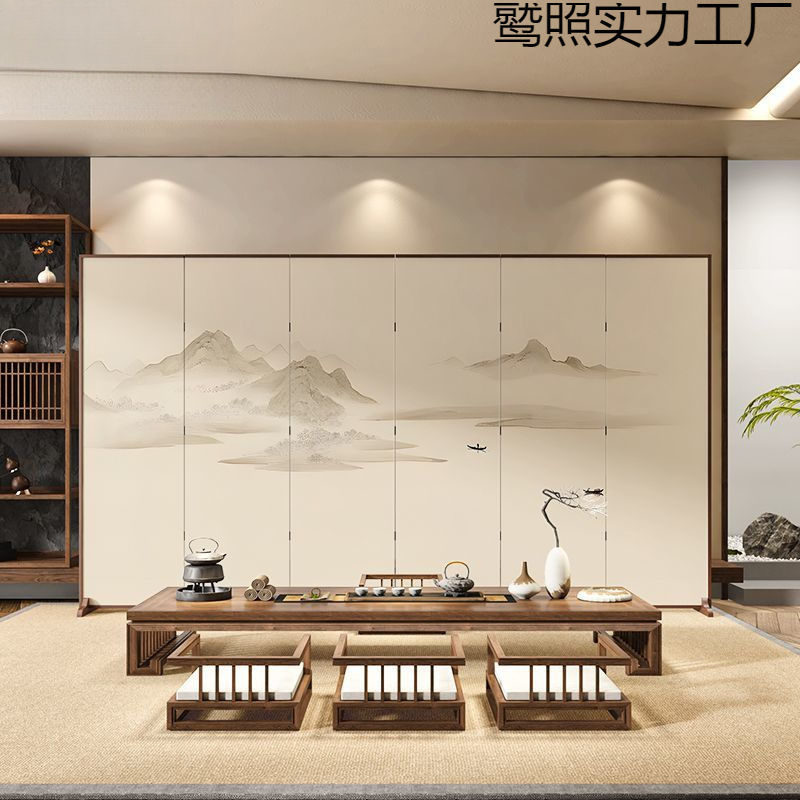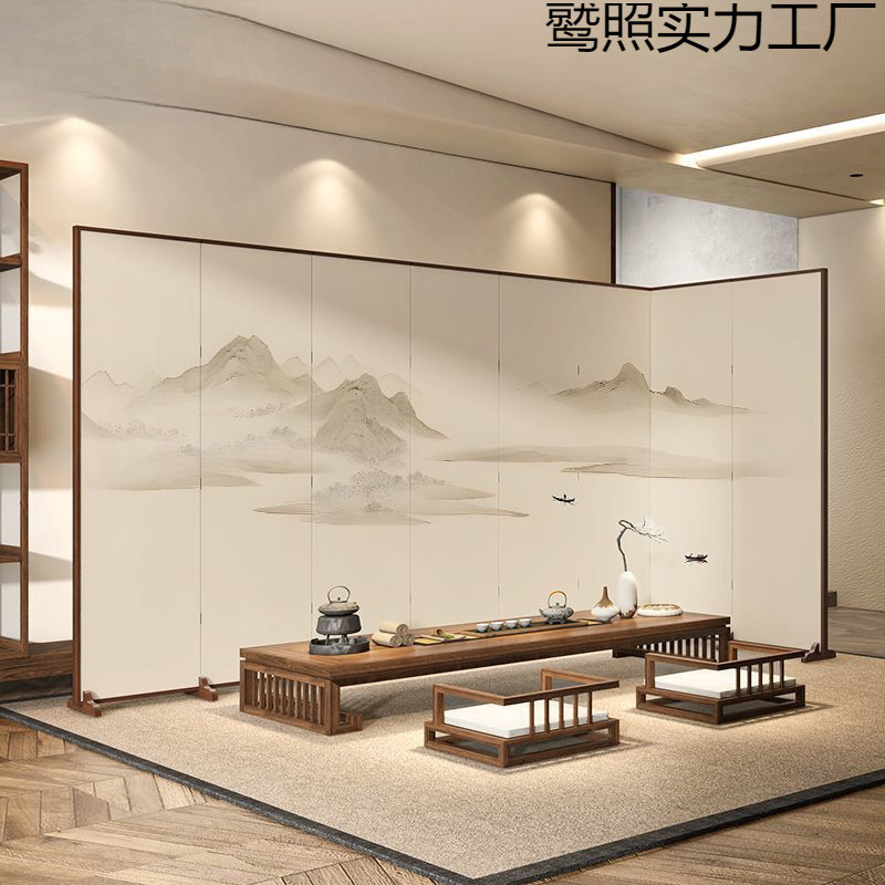 새로운 중국 스타일 패브릭 스크린 파티션 거실 입구 침실 접이식 이동 대피소 사무실 다이닝 룸 티 룸