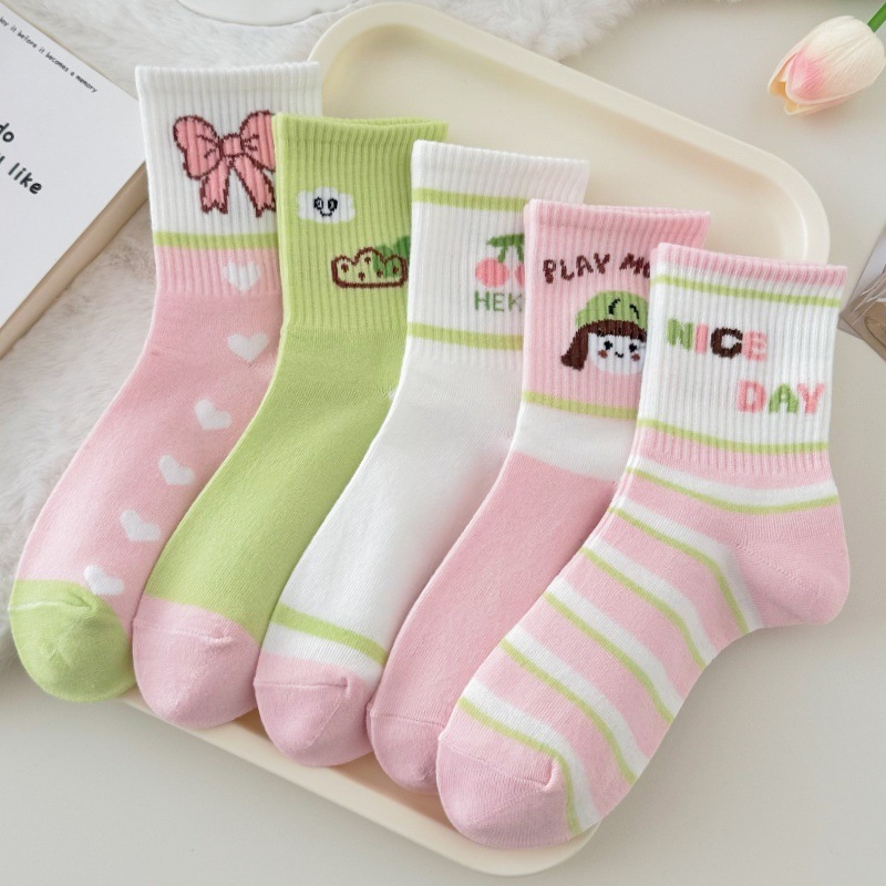 어린이 양말 소녀의 봄과 가을 중추절 귀여운 만화 핑크 중 · 대형 어린이 가을 · 겨울 중학교 여고생 높은 허리