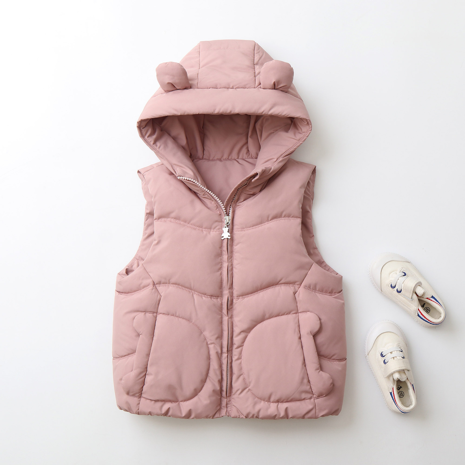 캔디 컬러 후드 코튼 소년과 소녀의 조끼 어린이 코튼 조끼 패션 올매치 2025 봄과 가을 새로운 아동복