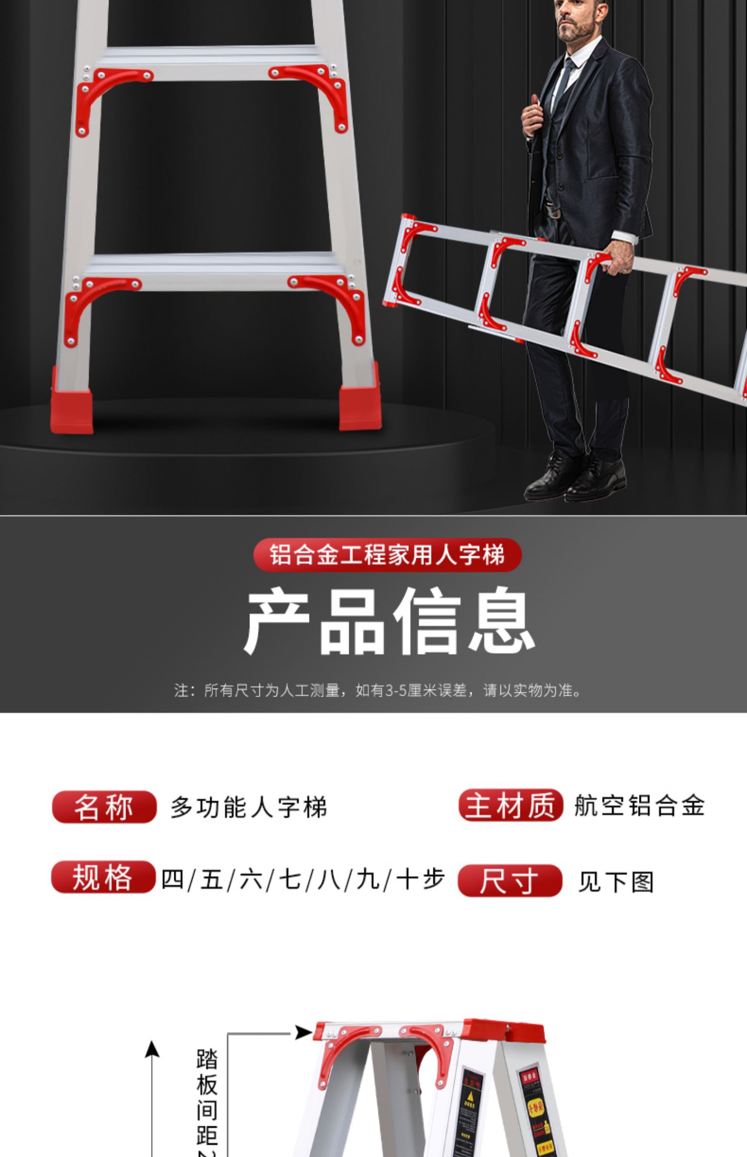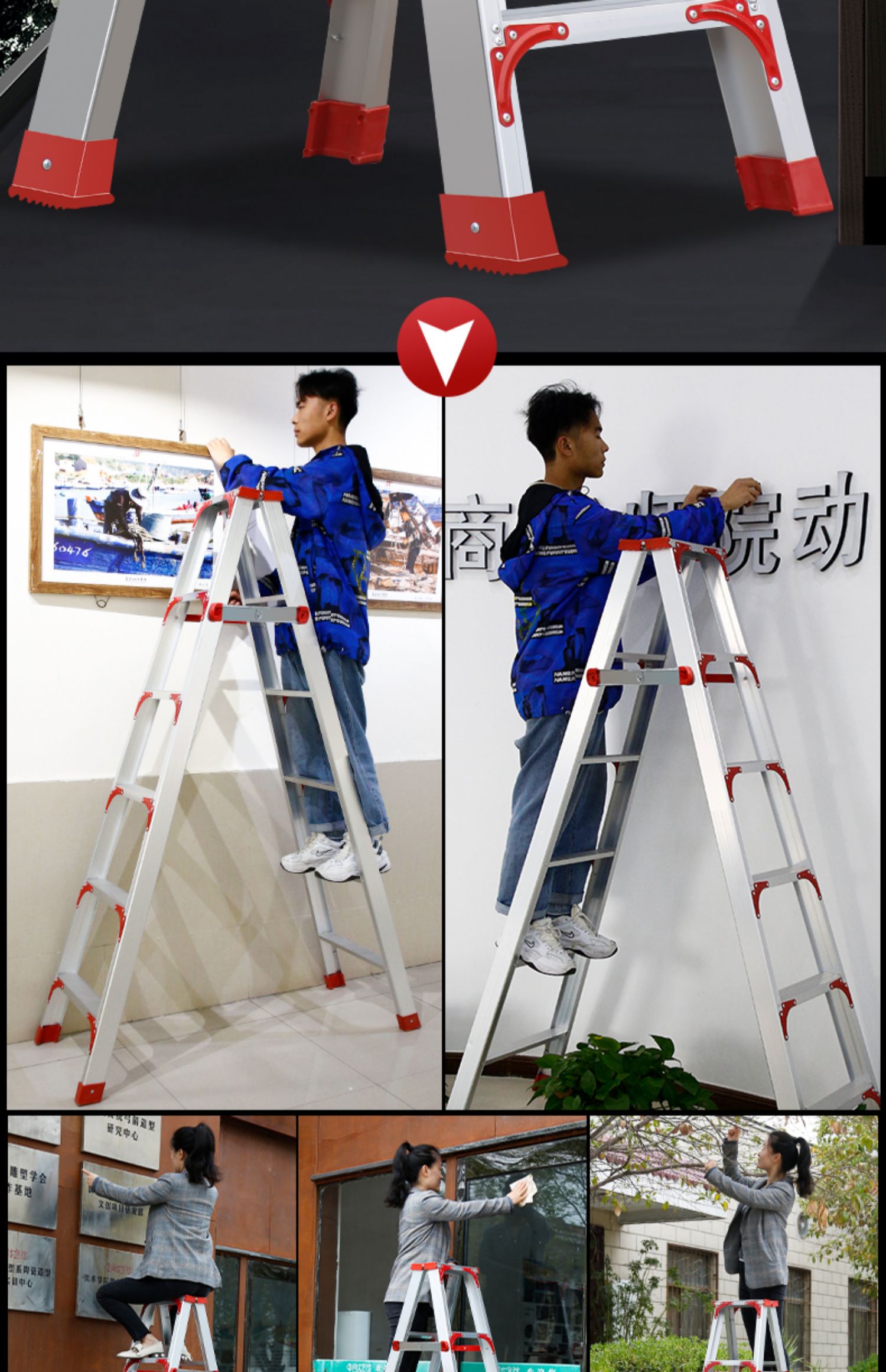 사다리 헤링본 사다리 가정용 접히는 망원경 리프팅 실내 다기능 알루미늄 합금 두꺼운 더블 사이드 엔지니어링 사다리스토어 가기