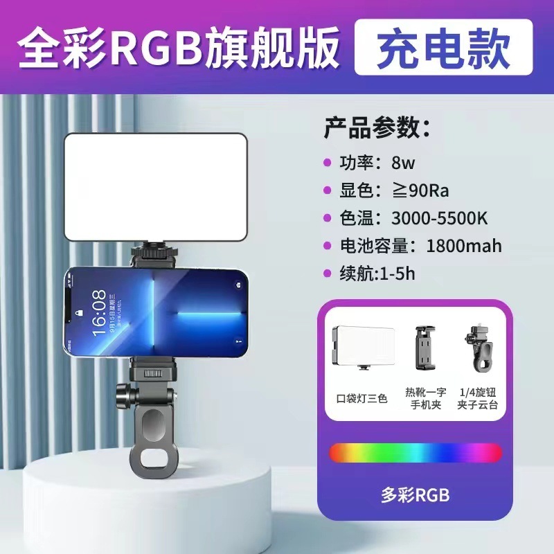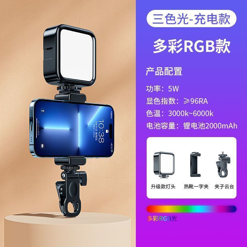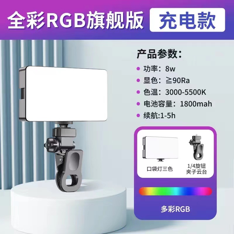 • [업그레이드된 대형 RGB 풀 컬러 충전 모델 G] 필 라이트 + 클립