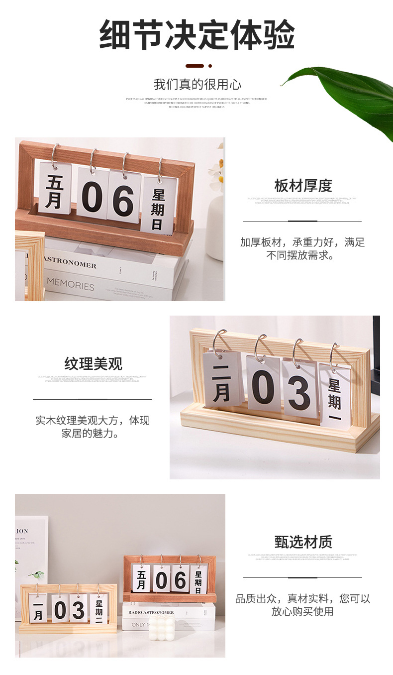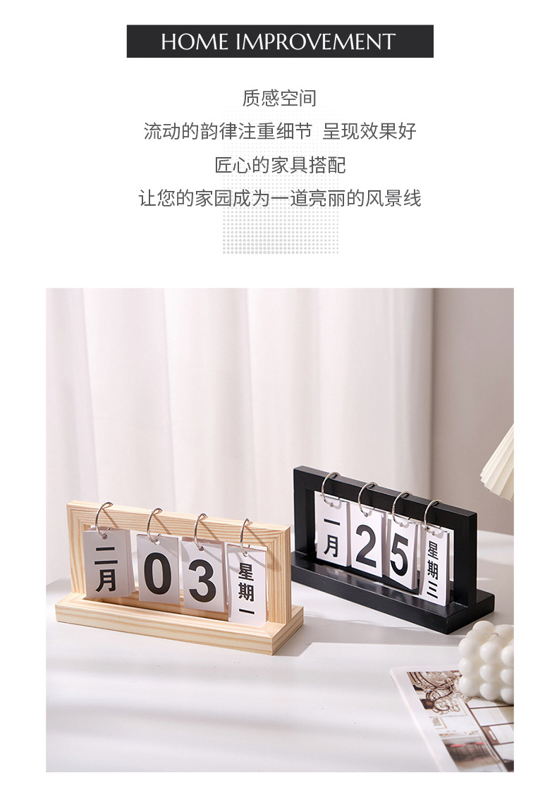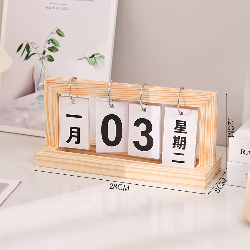 Ins 크리에이티브 데스크 캘린더 나무 날짜 플립 캘린더 침실 거실 홈 데스크탑 사진 장식품스토어 가기