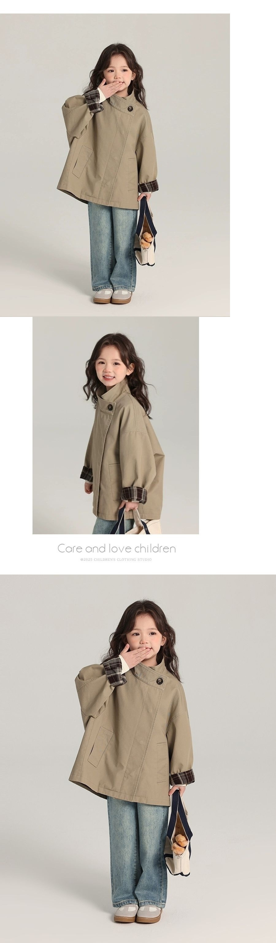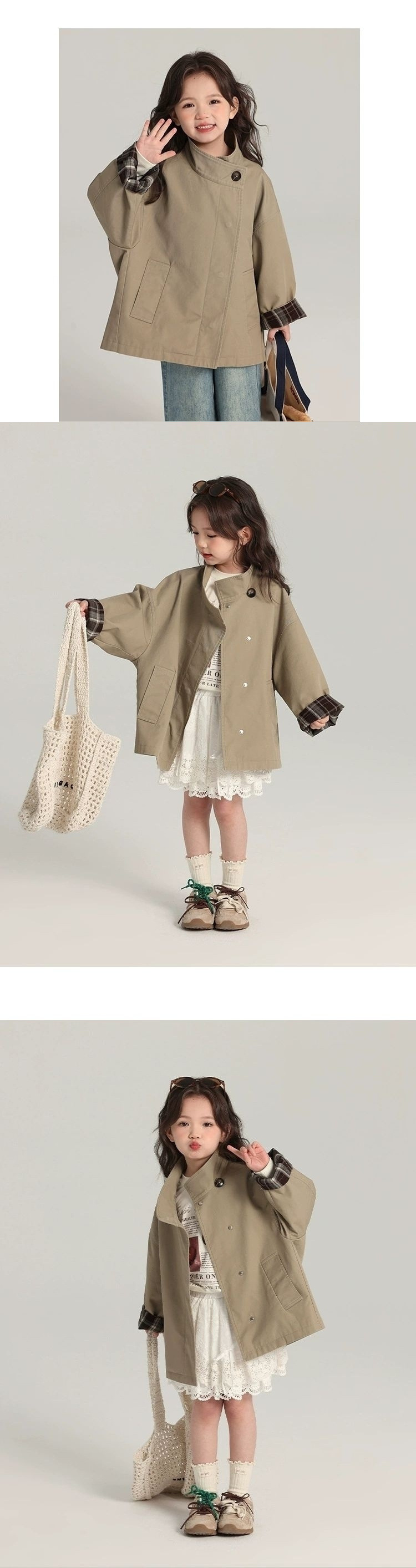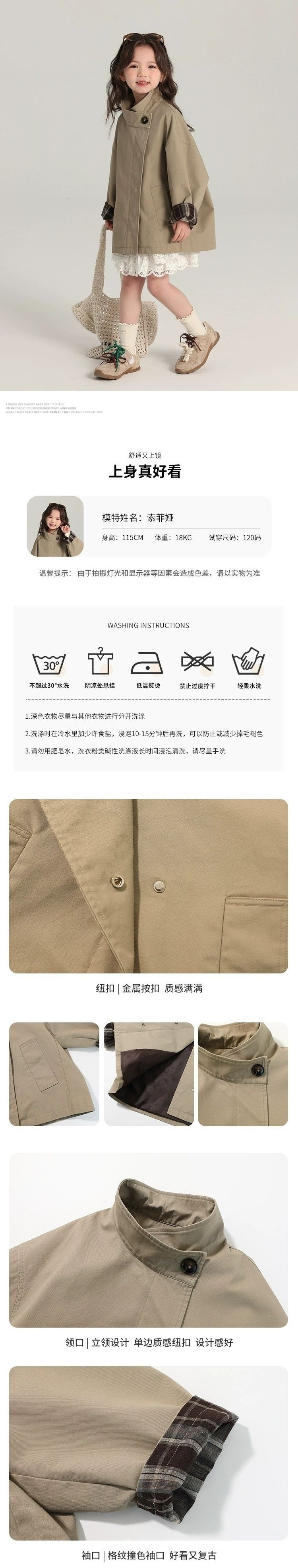 소녀용 윈드브레이커 코트 봄 · 가을 중간 길이 2025 새 봄 한국 스타일 레트로 어린이 봄 옷스토어 가기