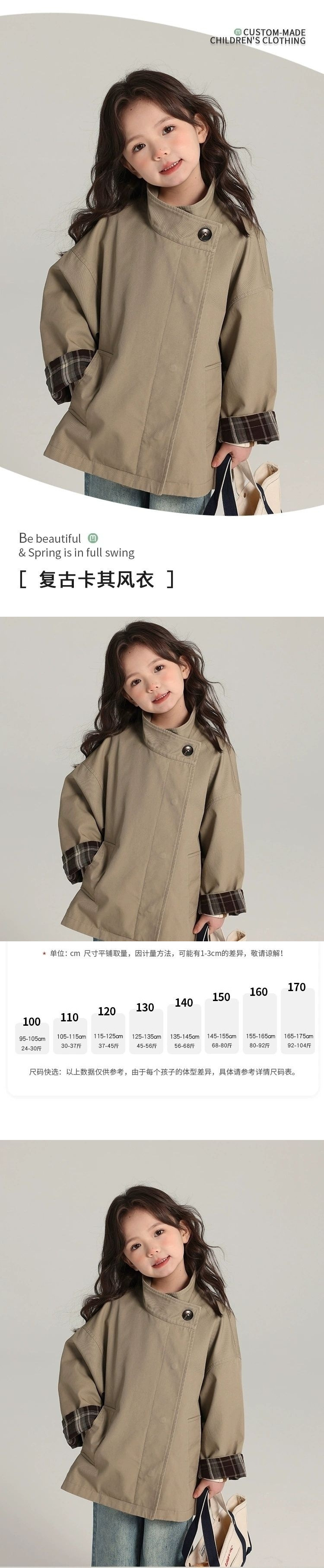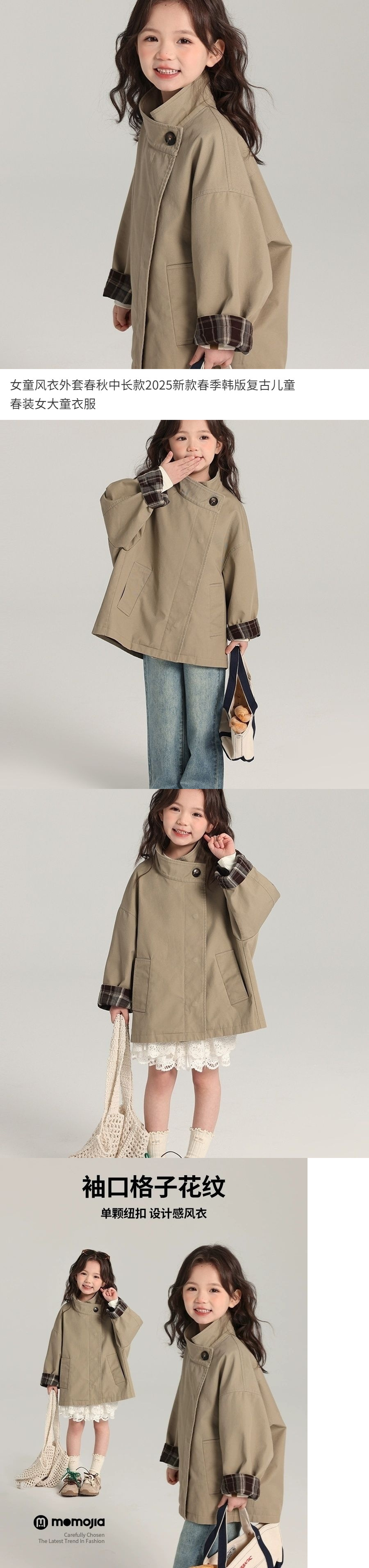 소녀용 윈드브레이커 코트 봄 · 가을 중간 길이 2025 새 봄 한국 스타일 레트로 어린이 봄 옷