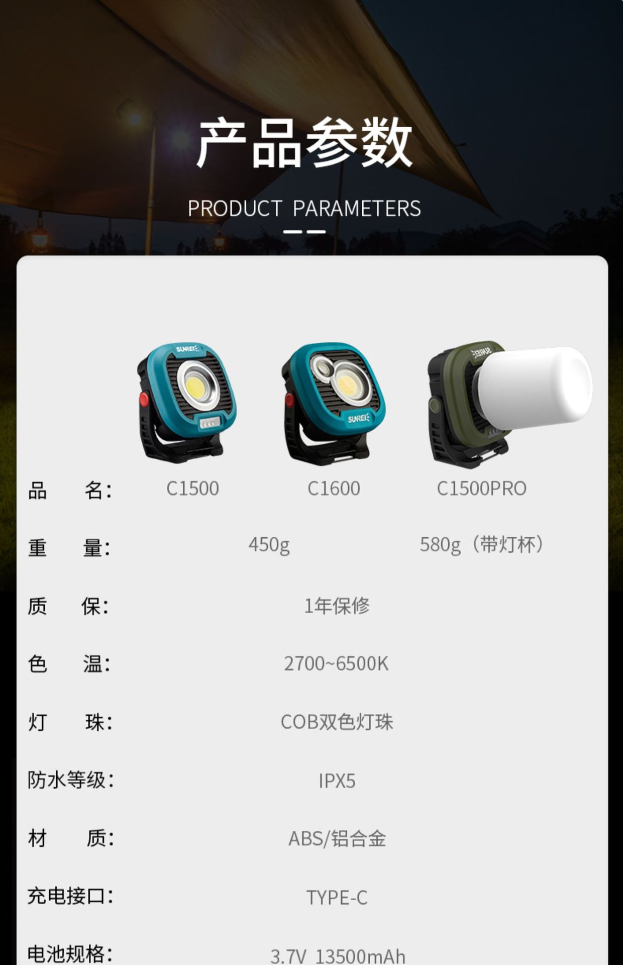 Shanlix C1500 C1600 야외 라이트 캠핑 텐트 라이트 충전 슈퍼 밝은 캠핑 라이트 방수 캠프 라이트