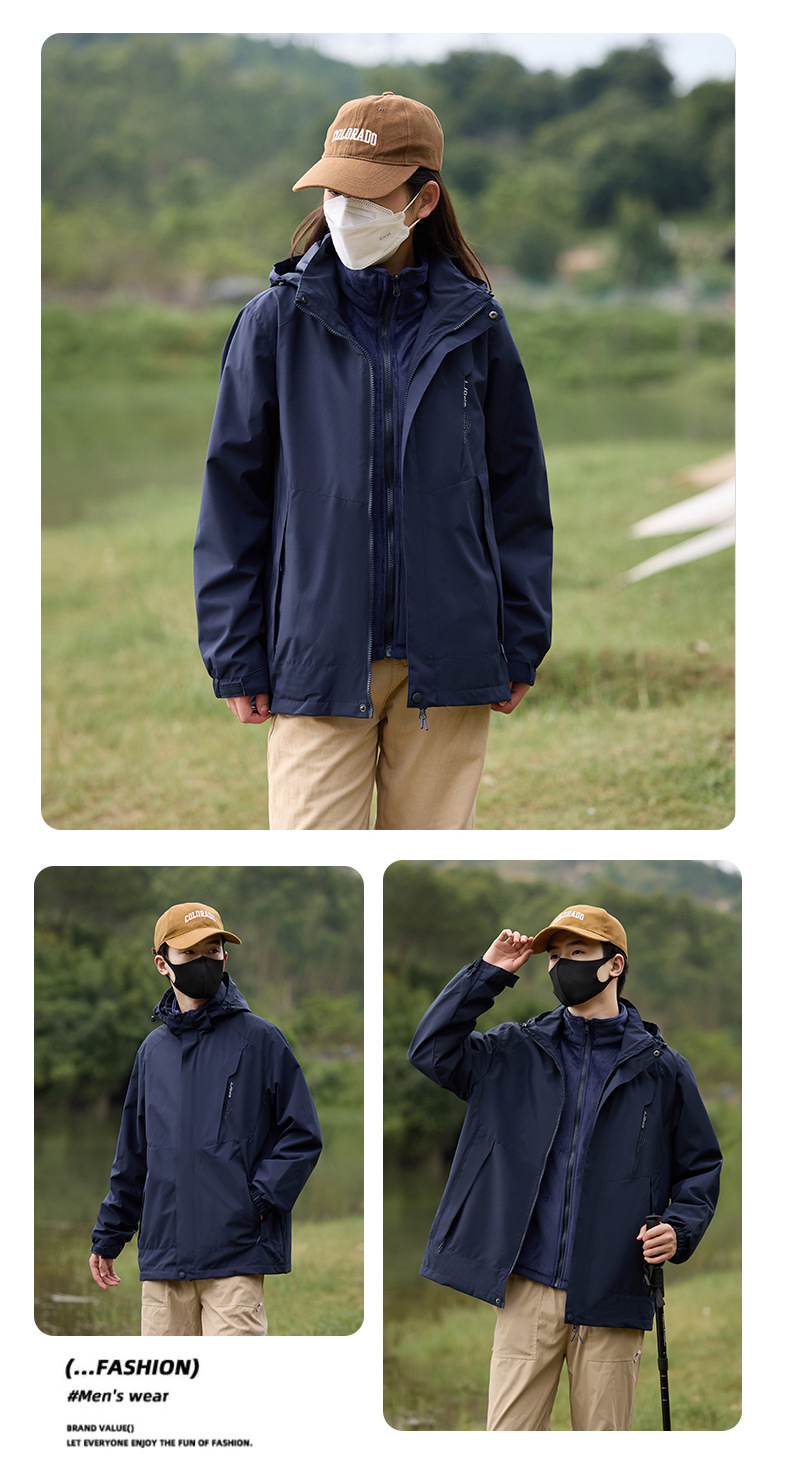 2024 가을 및 겨울 재킷 코트 용 야외 재킷 3 대 1 분리 가능한 남녀 산 방수 방풍 등산 세트