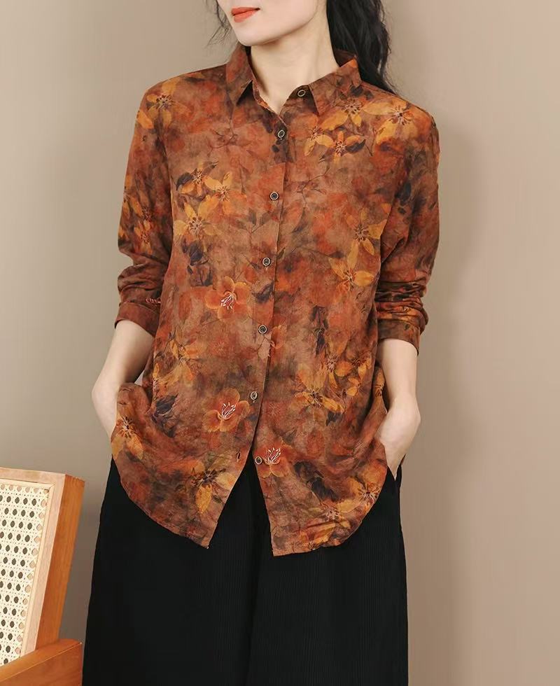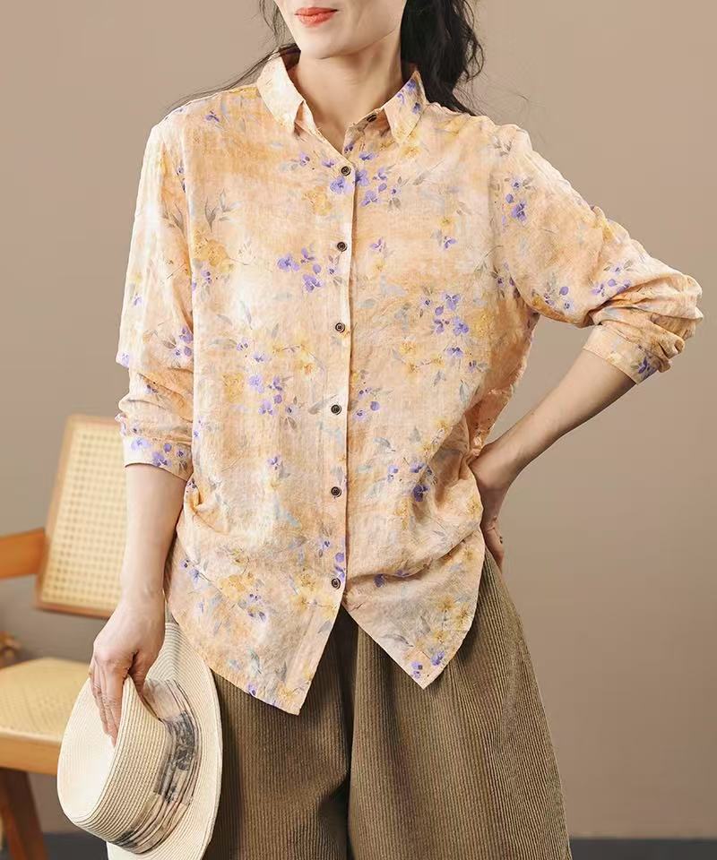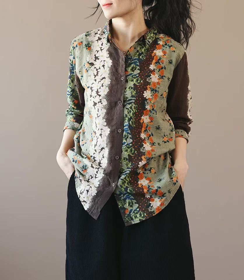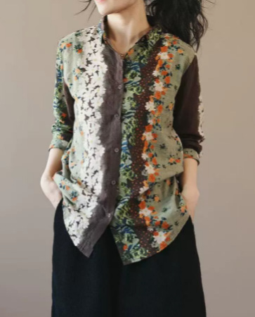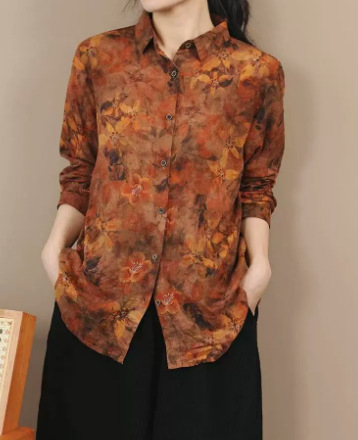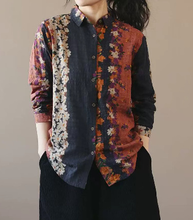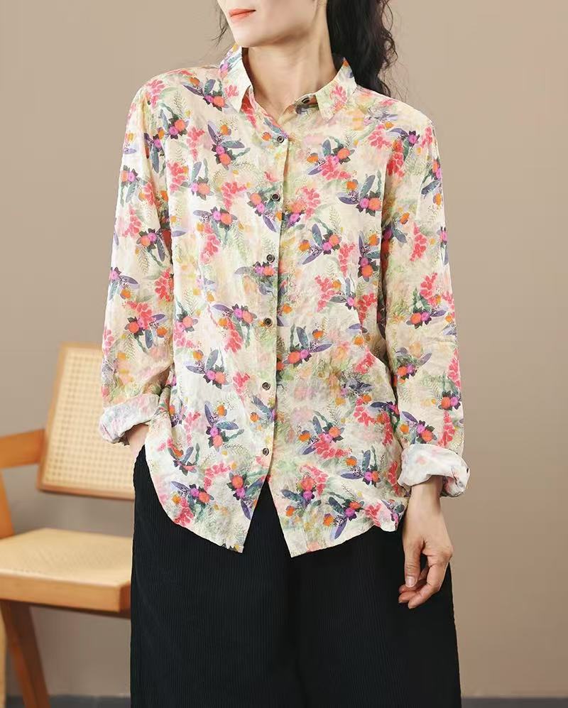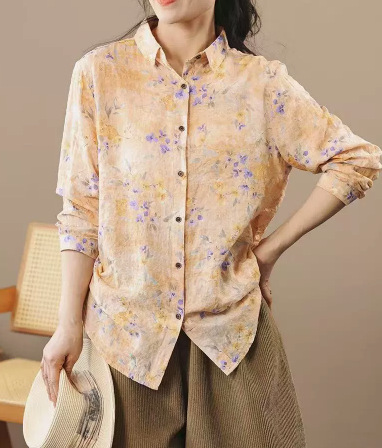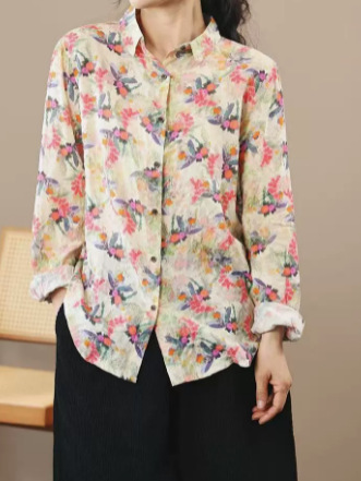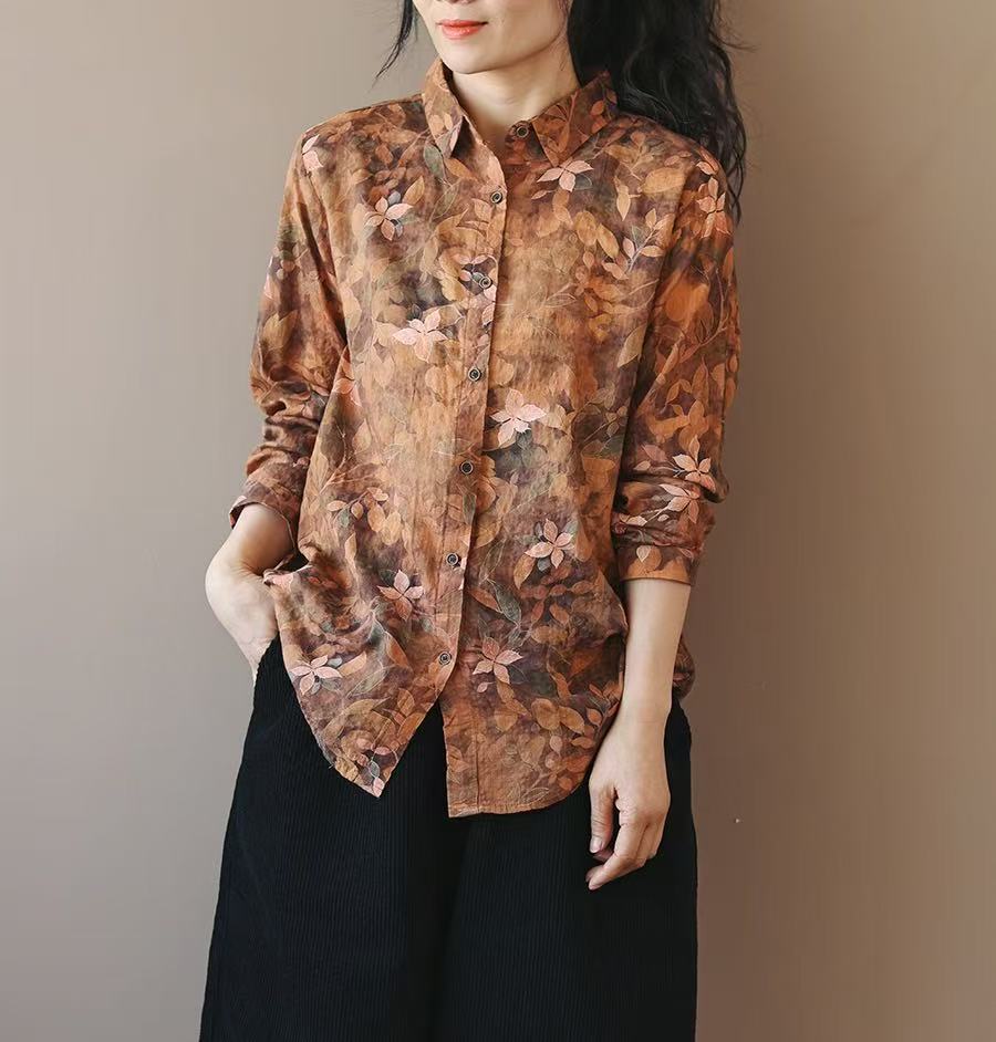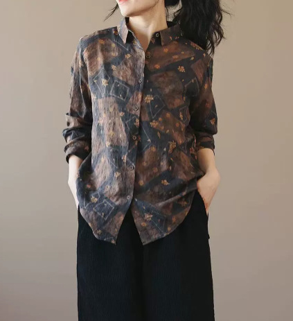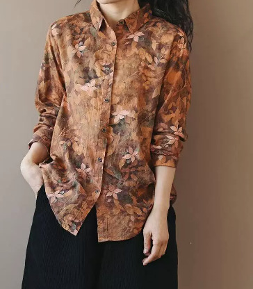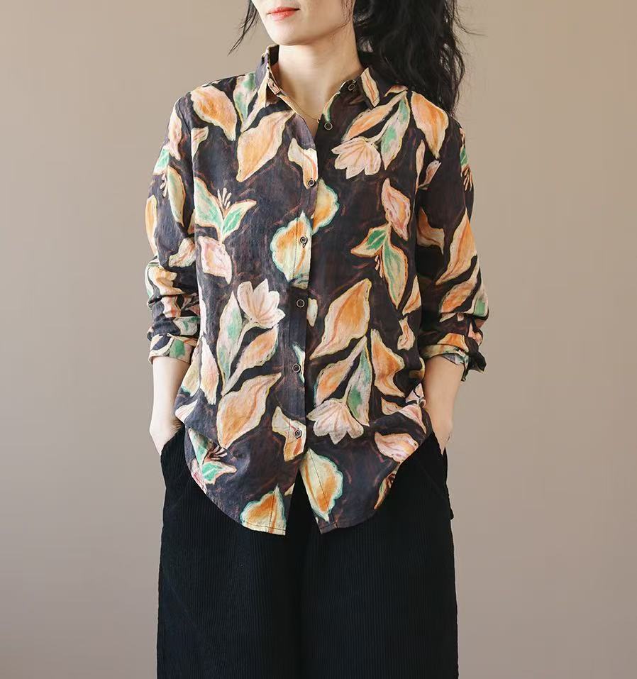봄 새로운면과 리넨 인쇄 셔츠 여성의 느슨한 슬림 유행 셔츠 베이스 셔츠 탑스토어 가기