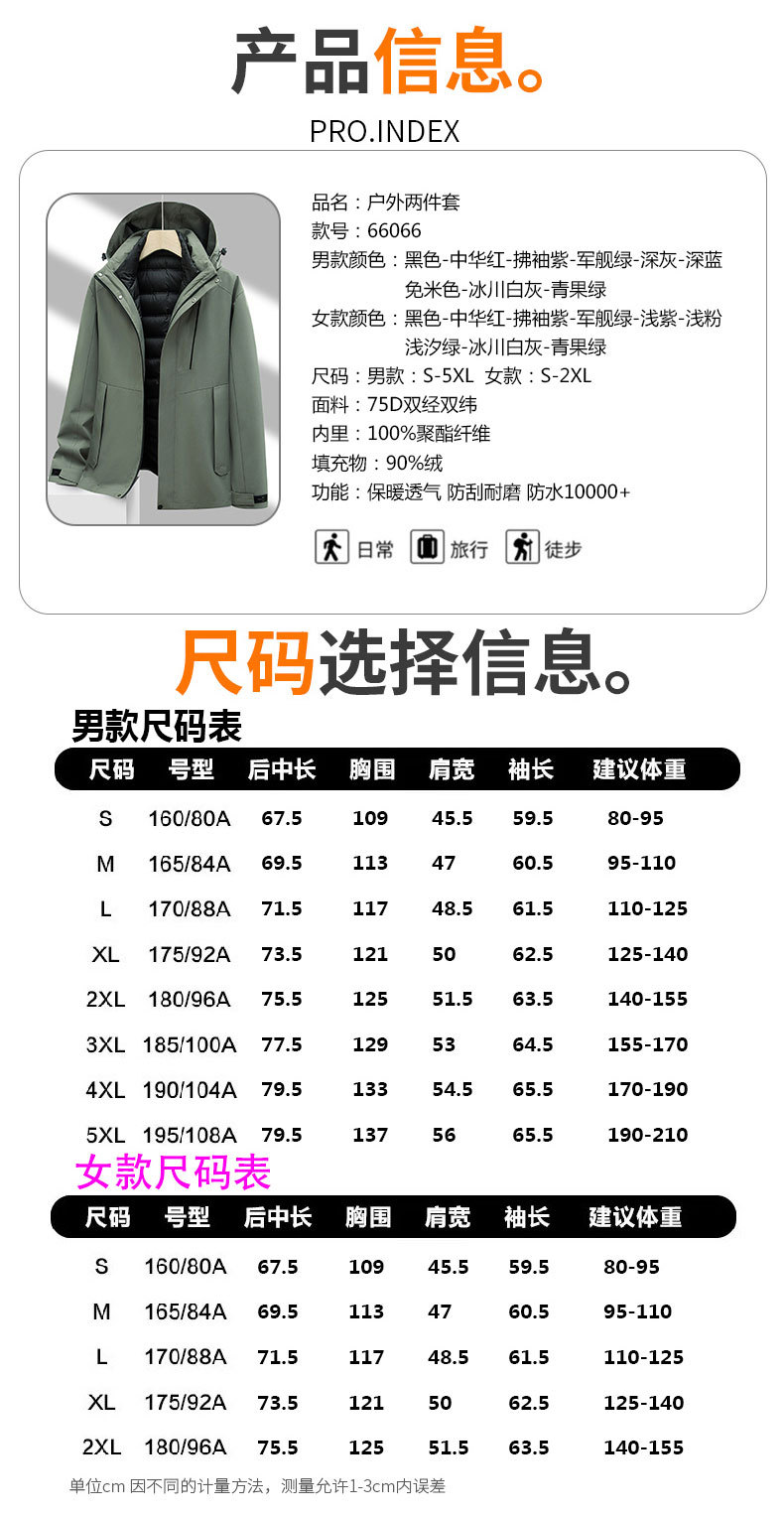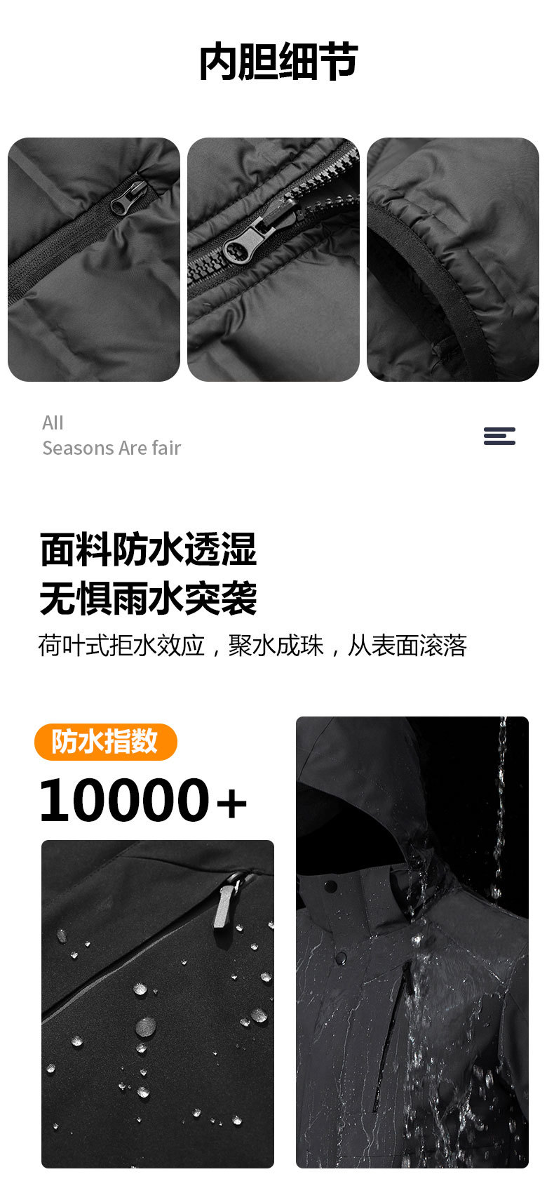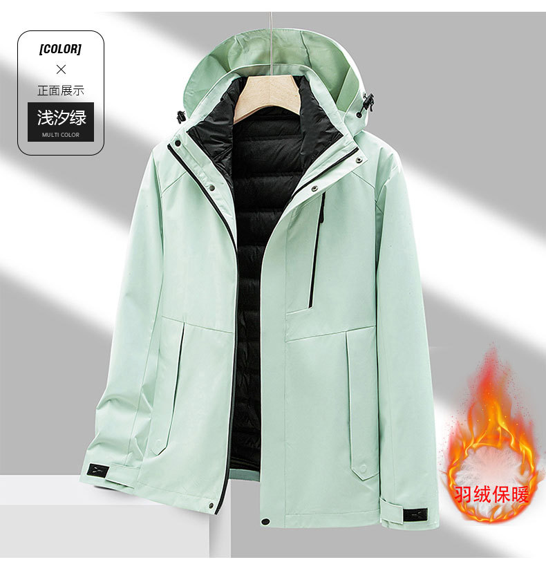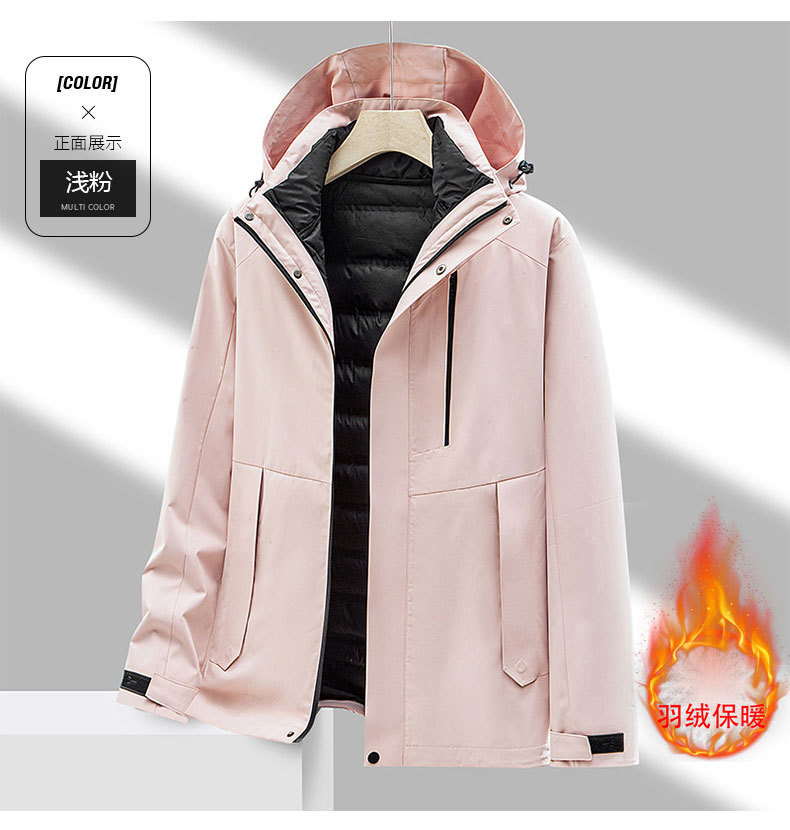 새로운 스타일 여성용 방풍 방수 3 대 1 솔리드 컬러 다운 재킷 냉간 작업복 남성용 등산 재킷스토어 가기