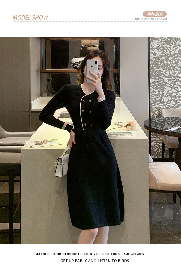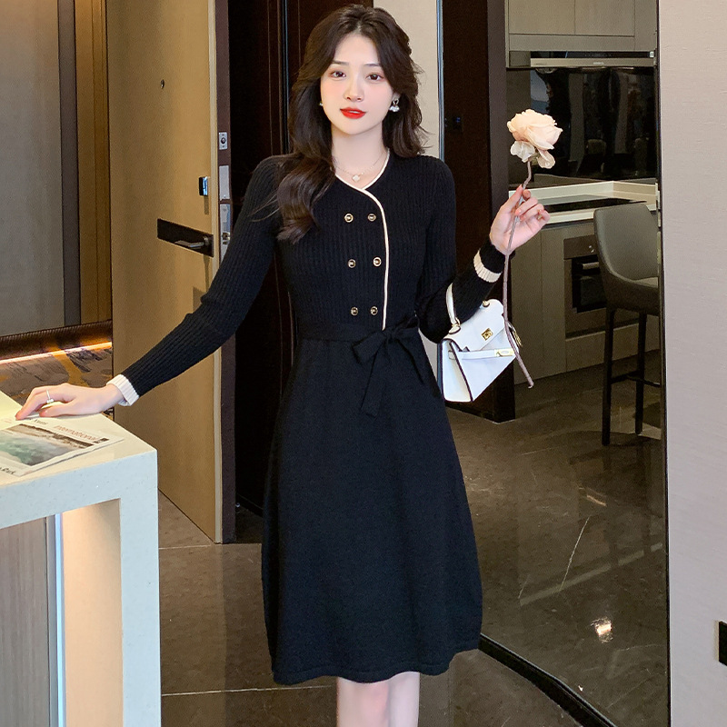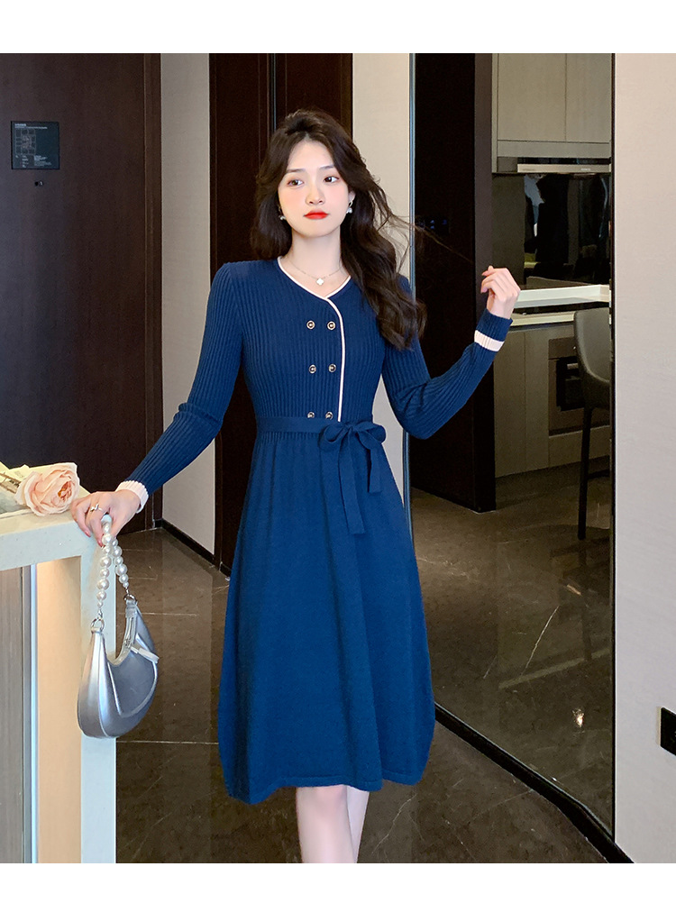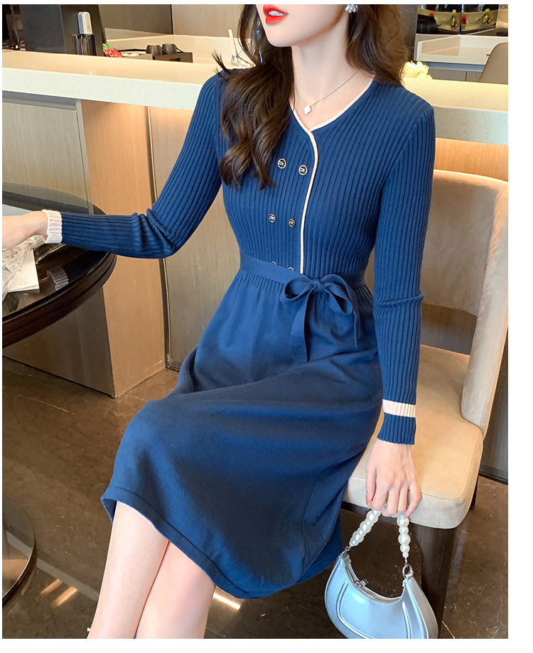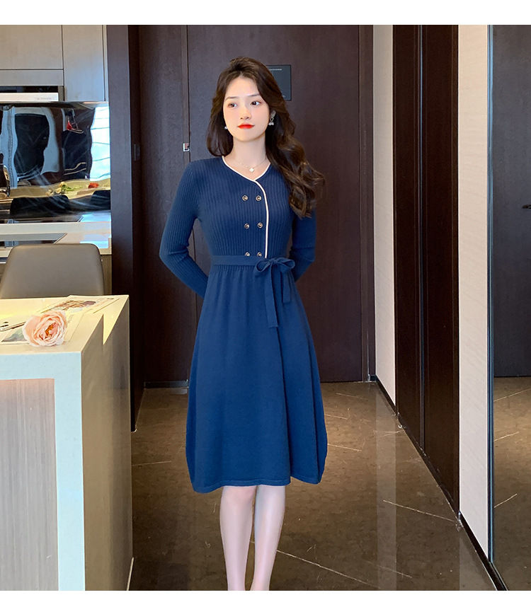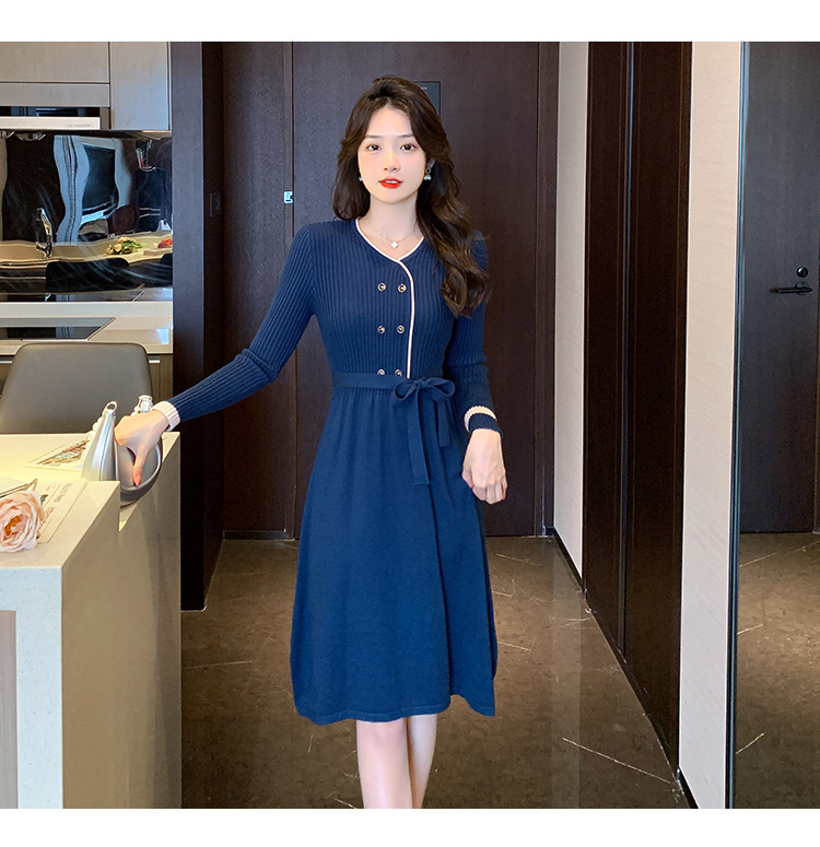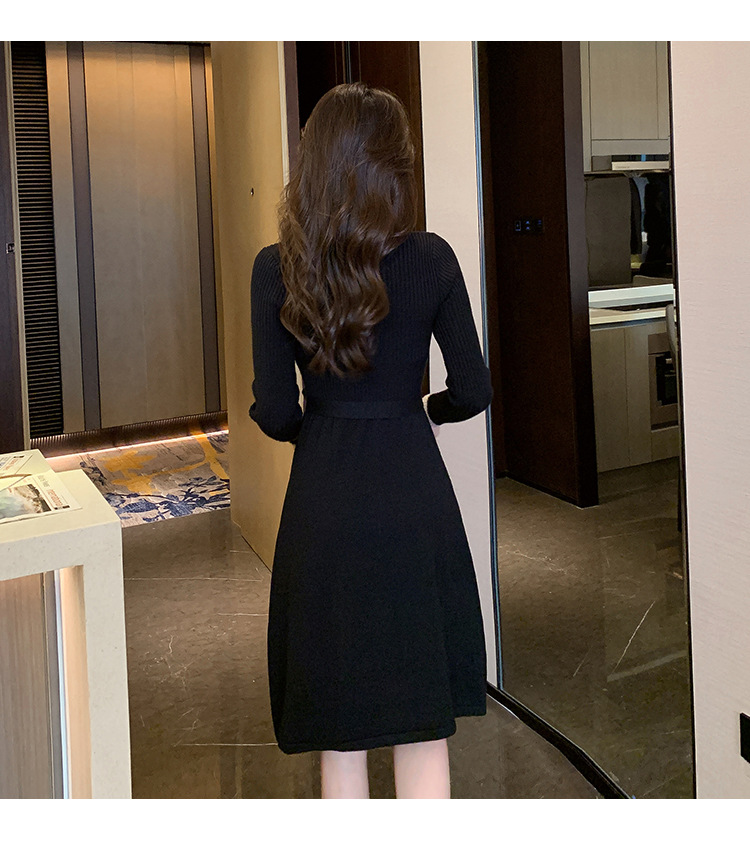 양모 스웨터 우아한 허리 원피스 여성의 가을과 겨울 레이스 업 아우터 스웨터 원피스 니트 베이스 캐시미어 스웨터스토어 가기